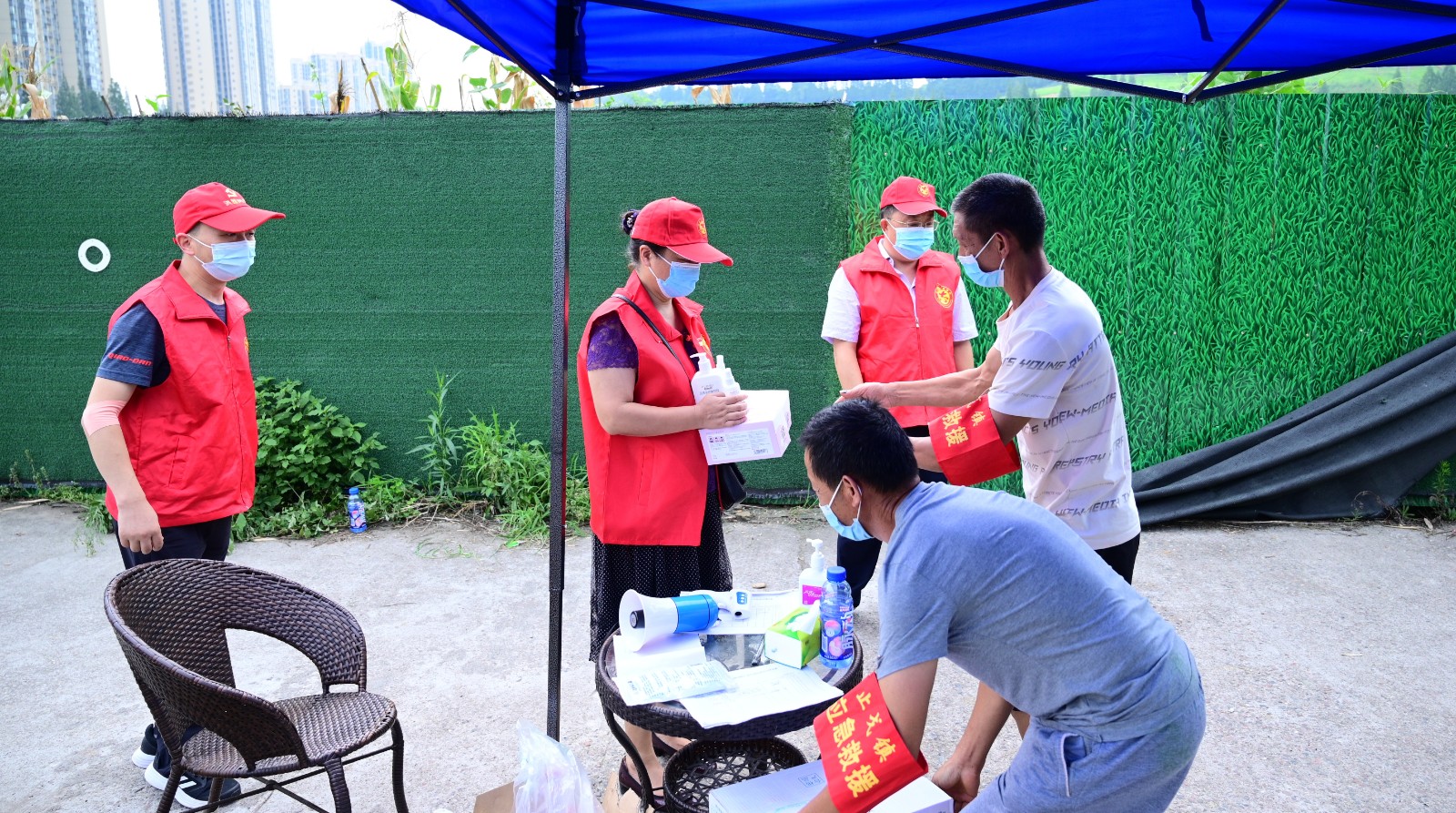 烈日高溫使豆大的汗珠從謝愛東的額頭不斷滑落,每當其他志愿者提出換她休息時,“沒問題,我可以的”便是不變的回應(yīng)?!芭c家鄉(xiāng)人民一道共度難關(guān),哪怕再熱、再苦、再累都值得。”