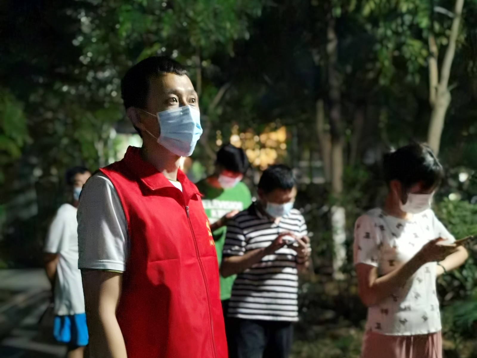 由于封控小區(qū)大多數(shù)居民選擇網(wǎng)上下單購買物資,大量物資堆放在小區(qū)大門,為確保大家生活物資供應(yīng)正常,黃黌贇化身“配送員”,第一時間攬下了這項體力活。白天閑暇時在烈日暴曬下推著大型購物車穿梭在小區(qū)內(nèi),為居民運送物資,保障居民正常生活,與其他志愿者一道,共同守護者小區(qū)居民生活物資保障中的“最后100米”。傍晚,黃黌贇化身“引導(dǎo)員”,協(xié)助搭建遮陽傘,搬運防疫物資,布置核酸檢測場地,維持現(xiàn)場秩序,引導(dǎo)居民進行核酸檢測,提供暖心服務(wù),助力核酸采集工作高效開展。往往一天的工作還未結(jié)束,他的手掌被泡得發(fā)白發(fā)皺,汗水早已經(jīng)浸透全身。