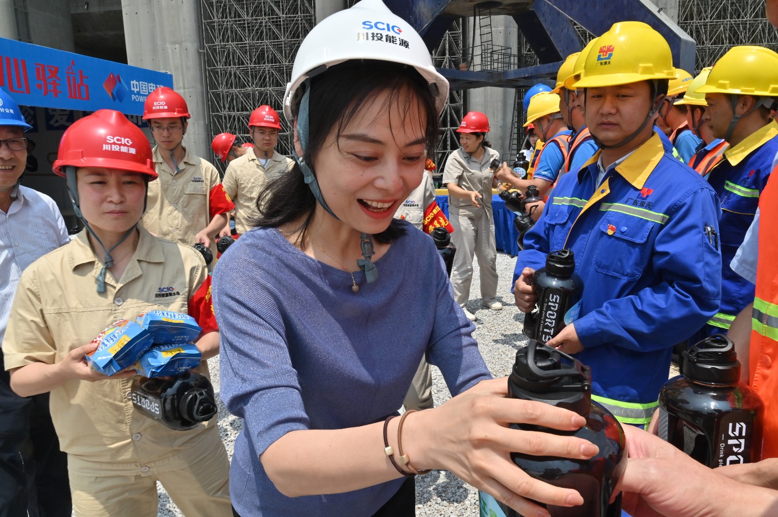 當(dāng)日下午,朱莉一行對銀江水電站上游圍堰、基坑廠房壩段等防汛防災(zāi)重點(diǎn)領(lǐng)域進(jìn)行了現(xiàn)場檢查,聽取工程建設(shè)情況,并為銀江水電站工地“愛心驛站”進(jìn)行揭牌,為一線建設(shè)者們送上夏季清涼物品和誠摯問候。