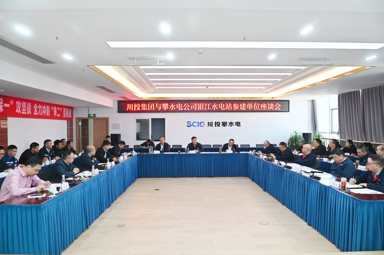 長江設(shè)計集團(tuán)高級咨詢、銀江項目總工汪慶元,水電五局黨委委員、副總經(jīng)理李法海,貴陽院/監(jiān)理公司黨總支書記、副總經(jīng)理石志勇,水電十四局建筑工程公司副總經(jīng)理王建平,廣東源天西南公司黨支部書記、總經(jīng)理謝良校及攀水電公司領(lǐng)導(dǎo)班子成員、相關(guān)人員參加會議。