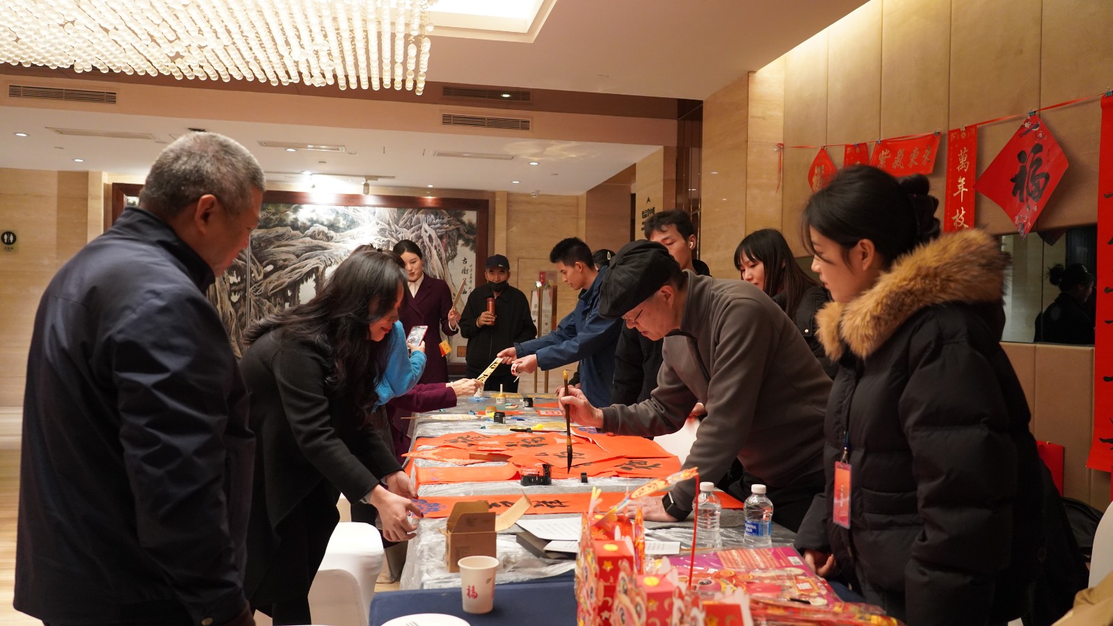 案桌上,筆墨凝香,職工們紛紛揮毫潑墨,現(xiàn)場創(chuàng)作了一幅幅新春對聯(lián)和剪紙畫。紅紙黑字,一個個“?!弊周S然紙上,風(fēng)格多樣的春聯(lián)傳遞著溫暖與喜慶。每一筆、每一劃都融入了職工們對新春的祝福與美好期許,為即將到來的新年增添了濃厚的文化氛圍。