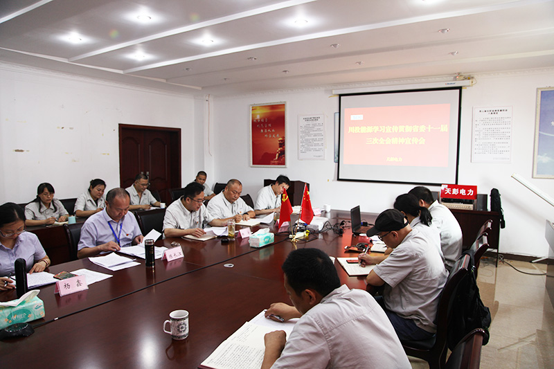 為推動(dòng)省委十一屆三次全會(huì)精神宣貫活動(dòng)深入開展,確保省委決策部署不折不扣落到實(shí)處, 8月8日,按照川投能源黨委的統(tǒng)一部署,黨委副書記、工會(huì)主席陳長江率黨群部副主任楊鑫一行赴天彭電力宣講省委十一屆三次全會(huì)精神,為天彭電力黨員干部和員工上了一堂生動(dòng)的黨課。會(huì)議由天彭電力黨總支書記、總經(jīng)理?xiàng)顫鞒?,天彭電力全體干部、黨員和員工代表共計(jì)28人參加了宣講會(huì)。