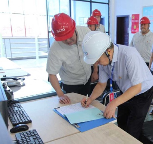 宣講會(huì)結(jié)束后,陳長江一行在楊濤的陪同下分別前往鳳鳴橋站和官田壩站生產(chǎn)現(xiàn)場,對(duì)設(shè)備運(yùn)行、環(huán)境保護(hù)措施、防洪物資準(zhǔn)備、汛期帶班領(lǐng)導(dǎo)值班情況、運(yùn)行記錄、“兩票三制”執(zhí)行等情況進(jìn)行了檢查。