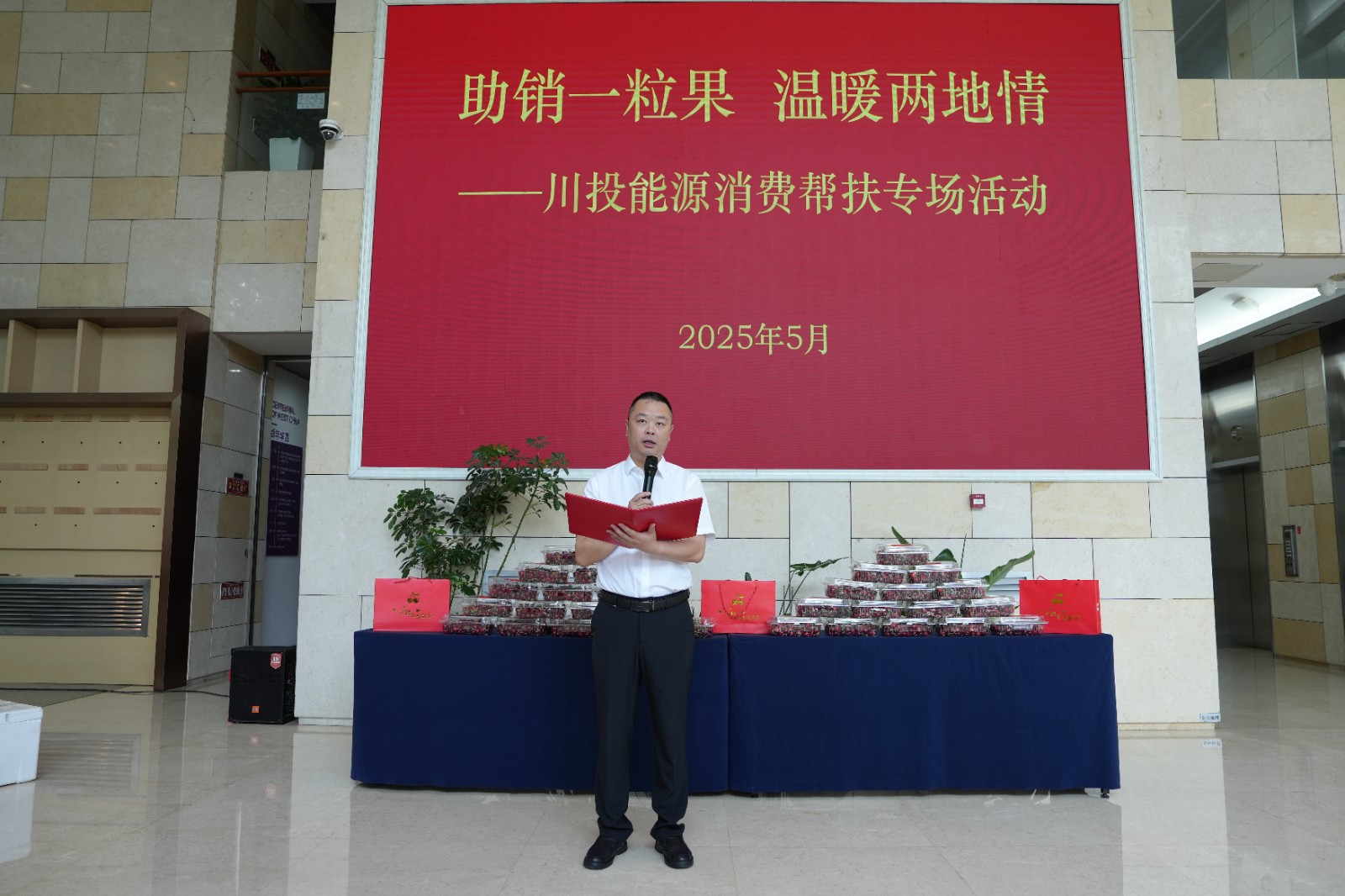 為鞏固拓展托底性幫扶工作成效,在助力鄉(xiāng)村振興中彰顯省屬國(guó)企的責(zé)任擔(dān)當(dāng),5月7日,川投能源與結(jié)對(duì)幫扶的儀隴縣馬鞍鎮(zhèn)、福臨鄉(xiāng)在成都舉辦“助銷一粒果 溫暖兩地情”消費(fèi)幫扶專場(chǎng)活動(dòng)。川投能源黨委書記、副董事長(zhǎng)、總經(jīng)理?xiàng)詈槌鱿顒?dòng)并致辭,儀隴縣副縣長(zhǎng)林雪松致感謝辭。