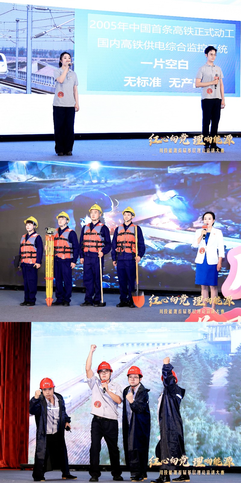決賽現(xiàn)場,來自川投能源所屬公司的6支優(yōu)勝隊伍逐一登臺競演,內(nèi)容聚焦項目建設(shè)、科技創(chuàng)新、保電保供、防洪度汛、鄉(xiāng)村振興等不同領(lǐng)域,用鮮活的事例、生動的語言、真摯的情感,以“小話題”闡述“大主題”,把黨的創(chuàng)新理論轉(zhuǎn)化為干部職工通俗易懂、易于接受的家常話,贏得現(xiàn)場陣陣掌聲。