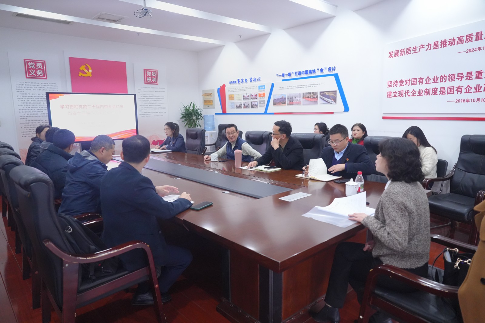 12月12日下午,川投能源黨委委員、財(cái)務(wù)總監(jiān)劉好赴交大光芒專題宣講黨的二十屆四中全會(huì)及省委十二屆八次全會(huì)精神,交大光芒公司黨總支書記、常務(wù)副總經(jīng)理王濤主持會(huì)議。