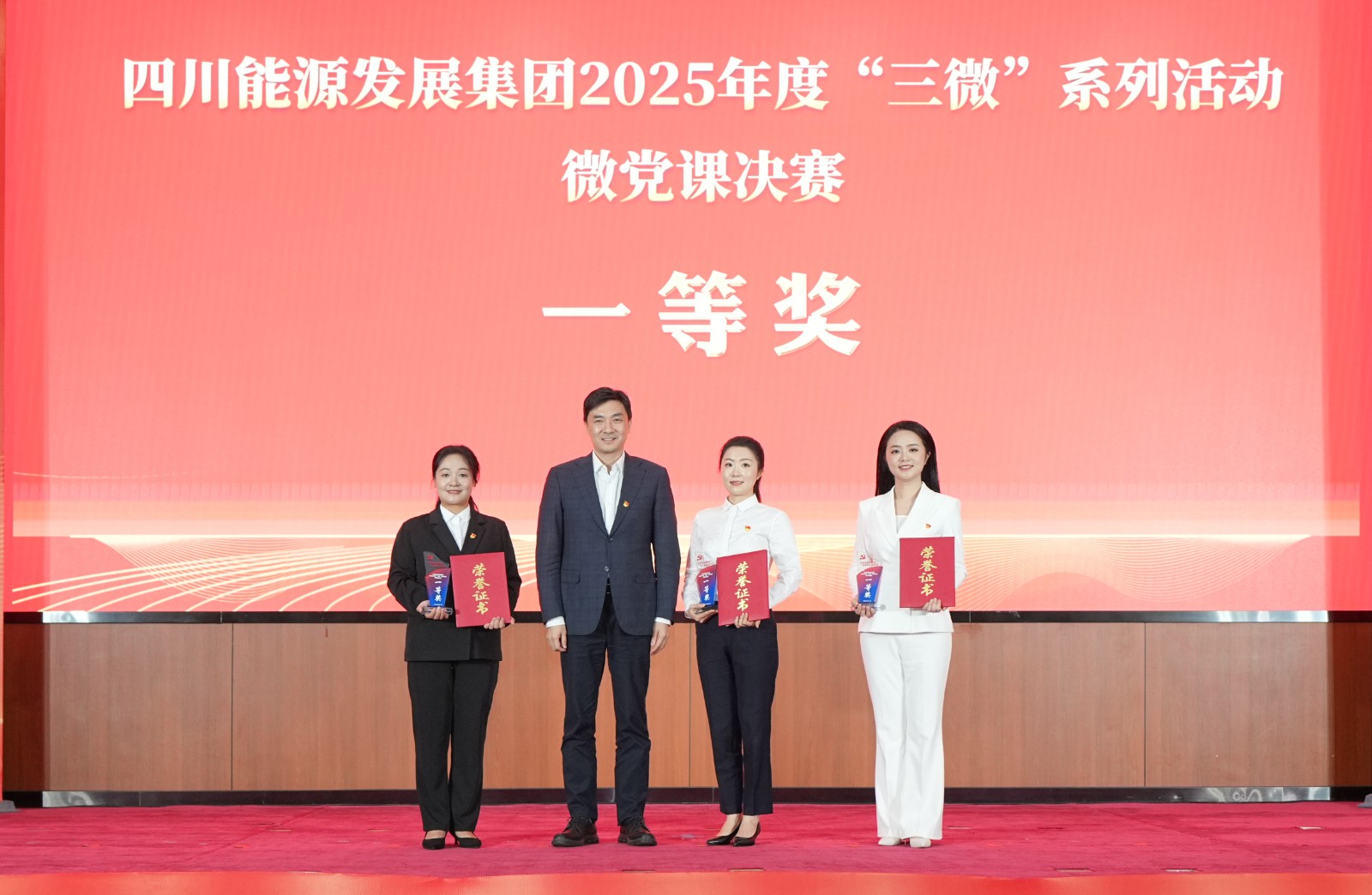 1月22日,四川能源發(fā)展集團(tuán)“黨建引領(lǐng)聚合力?改革重組啟新程”2025年度“三微”系列活動(dòng)微黨課決賽,在集團(tuán)總部圓滿落幕。川投能源基層理論宣講“睿聲工作室”骨干成員,川投電力公司黨群工作部趙夢(mèng)婷講授的微黨課《追光之路》,憑借深厚的情感、生動(dòng)的敘事和鮮明的主題,以全場(chǎng)最高分?jǐn)孬@一等獎(jiǎng)。此外,川投能源還包攬了本次微黨課決賽的優(yōu)秀組織獎(jiǎng)。集團(tuán)公司黨委副書(shū)記、副董事長(zhǎng)、總經(jīng)理鄧超為獲得一等獎(jiǎng)的主講人頒獎(jiǎng),川投能源黨委書(shū)記、董事長(zhǎng)劉勝金,黨委副書(shū)記、職工董事、工會(huì)主席冉蘭平現(xiàn)場(chǎng)觀看微黨課決賽。