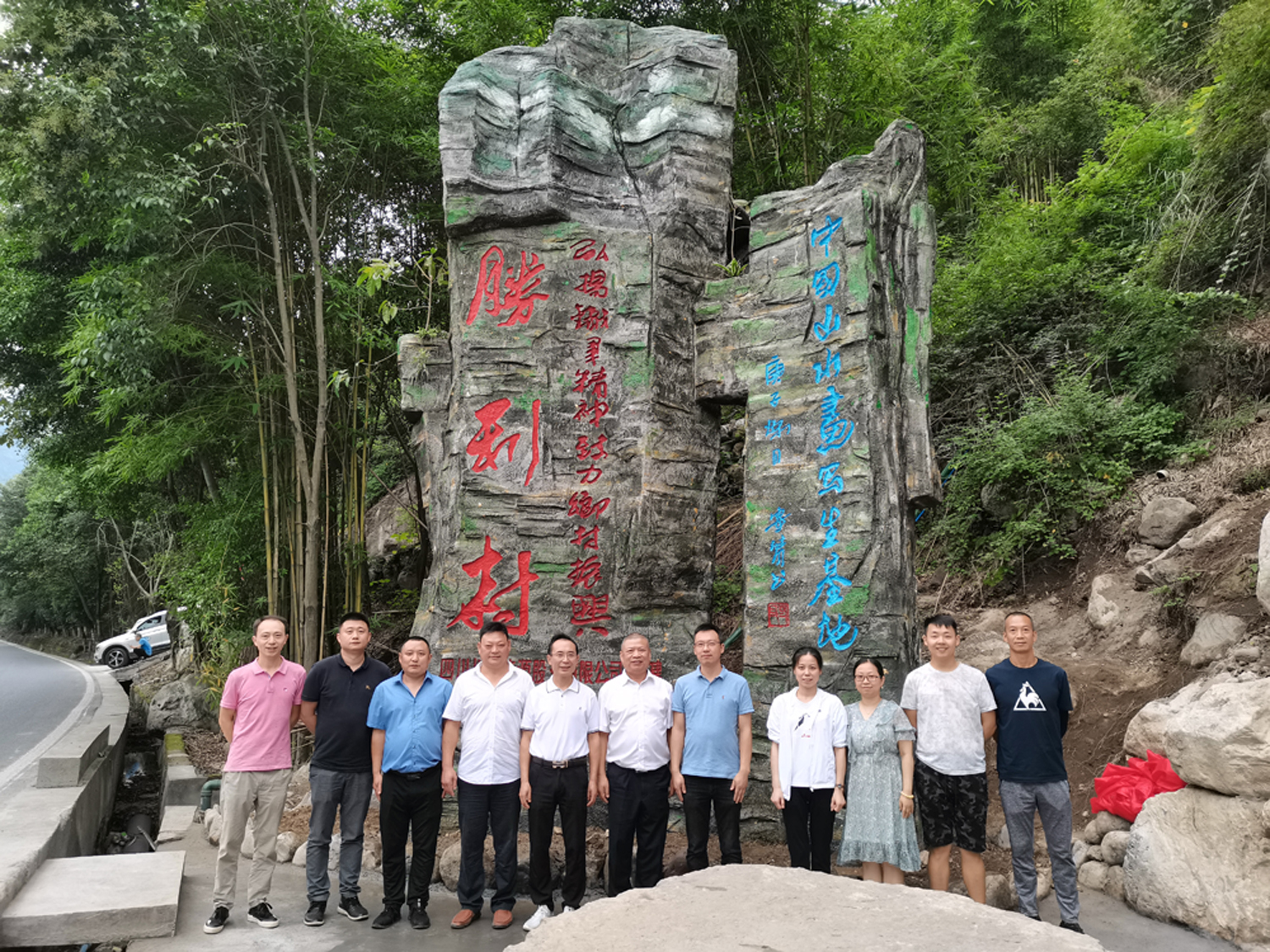 根據(jù)金口河區(qū)對(duì)大峽谷景區(qū)的統(tǒng)籌規(guī)劃,川投能源立足當(dāng)?shù)氐乩硖攸c(diǎn),用心打造旅游產(chǎn)業(yè),在樂漢高速金口河出口(原新光村枕頭壩處)援建山門一座,作為大峽谷景區(qū)入口和旅游指引牌,吸引游客入村體驗(yàn)鄉(xiāng)村旅游。9月9日,楊洪一行到達(dá)金口河區(qū),不顧舟車勞頓,立即前往勝利村山門處,舉行“川投能源捐建”山門石碑揭牌儀式。