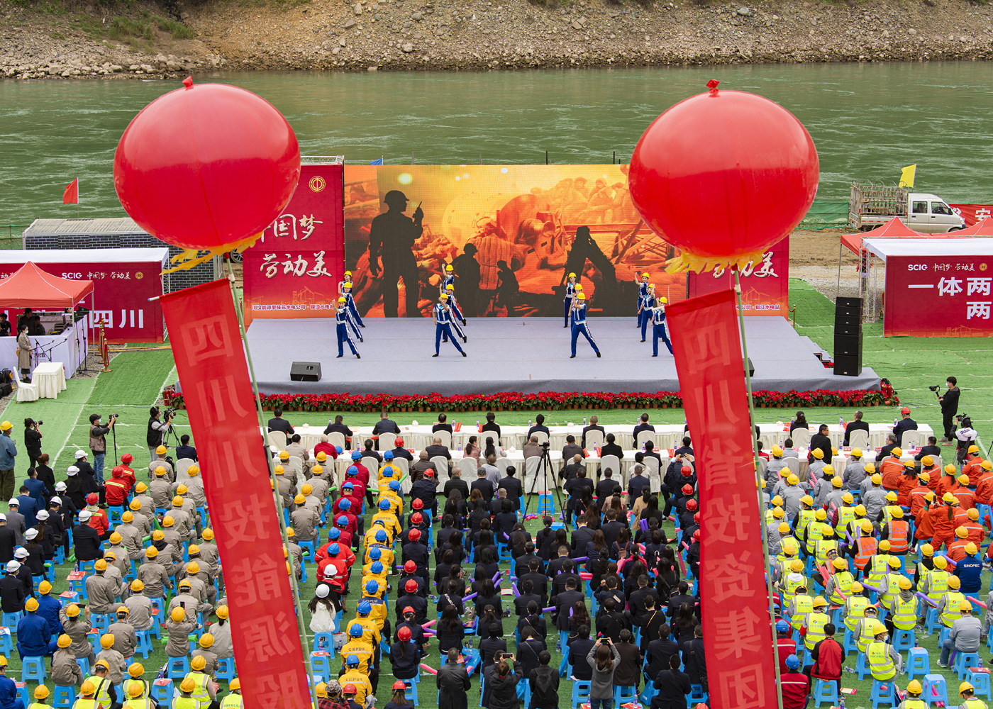 11月3日,在美麗的金沙江畔銀江水電站C2標(biāo)施工現(xiàn)場,四川省總工會(huì)以“中國夢·勞動(dòng)美”為主題,組織東方茉莉國樂團(tuán)的藝術(shù)家們?yōu)橐痪€勞動(dòng)者們獻(xiàn)上了一場精彩絕倫的視聽盛宴,本次演出同步進(jìn)行了網(wǎng)絡(luò)直播,超過10萬人進(jìn)行網(wǎng)絡(luò)觀看。