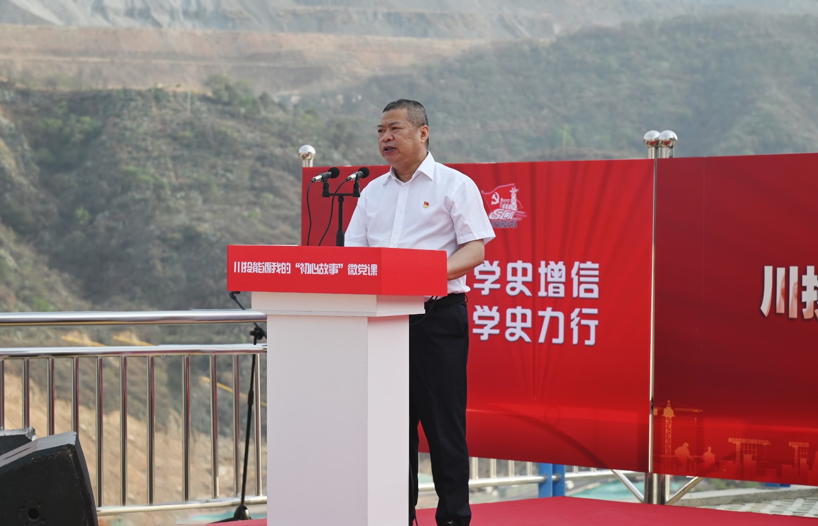 5月19日上午,川投能源“我的初心故事”微黨課巡講團(tuán)首站來到銀江水電站工地現(xiàn)場,為攀水電及各參建單位黨員代表100余人帶來了一場紅色勵(lì)志的“視聽盛宴”。公司黨委書記、副董事長、總經(jīng)理?xiàng)詈?,黨委副書記、工會(huì)主席楊超龍,副總經(jīng)理、攀水電公司黨總支書記、董事長徐孝剛及各參建單位負(fù)責(zé)人參加現(xiàn)場巡講。