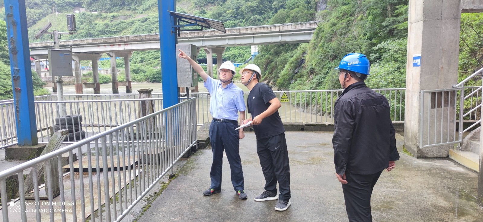 楊平一行先后前往腳基坪電站大壩及發(fā)電廠區(qū)實(shí)地檢查指導(dǎo),檢查組對(duì)大壩水庫(kù)調(diào)度情況、應(yīng)急電源保障、防汛物資儲(chǔ)備、閘門(mén)啟閉設(shè)備與電站的壓力容器特種設(shè)備、發(fā)電機(jī)主設(shè)備及GIS設(shè)備進(jìn)行了專項(xiàng)檢查。