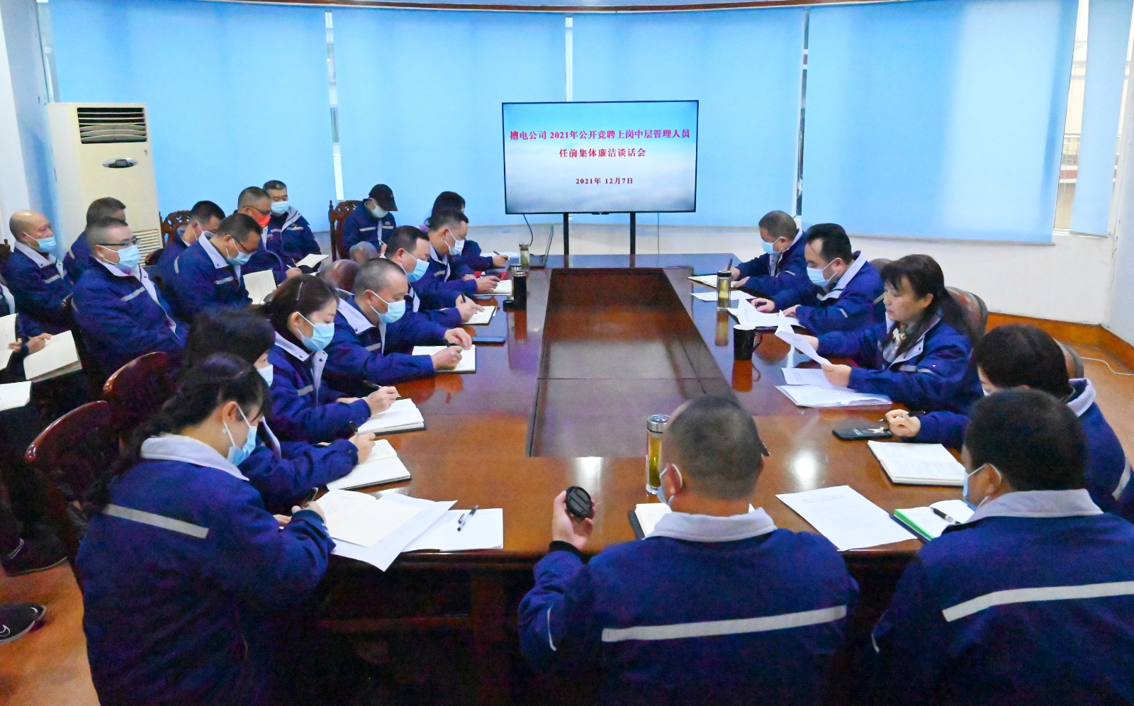 為了貫徹落實(shí)集團(tuán)公司關(guān)于進(jìn)一步深化“三項(xiàng)制度改革”精神,槽漁灘公司于2021年11月開展了中層管理人員全員公開競聘工作。26名管理人員經(jīng)組織考察、競聘答辯、群眾監(jiān)督三個(gè)環(huán)節(jié)成功競聘。12月7日上午,按照全面從嚴(yán)治黨和黨風(fēng)廉政建設(shè)要求,增強(qiáng)中層管理人員廉潔從業(yè)意識(shí)和拒腐防變能力,公司紀(jì)委組織新競聘上崗的中層管理人員進(jìn)行任前集體廉潔談話。川投電力黨委書記、董事長兼槽漁灘公司黨委書記、董事長楊濤,黨委委員、總經(jīng)理何光富,黨委委員、紀(jì)委書記謝愛東出席會(huì)議,并分別對參會(huì)人員進(jìn)行了廉潔談話。會(huì)議由紀(jì)委書記謝愛東主持。