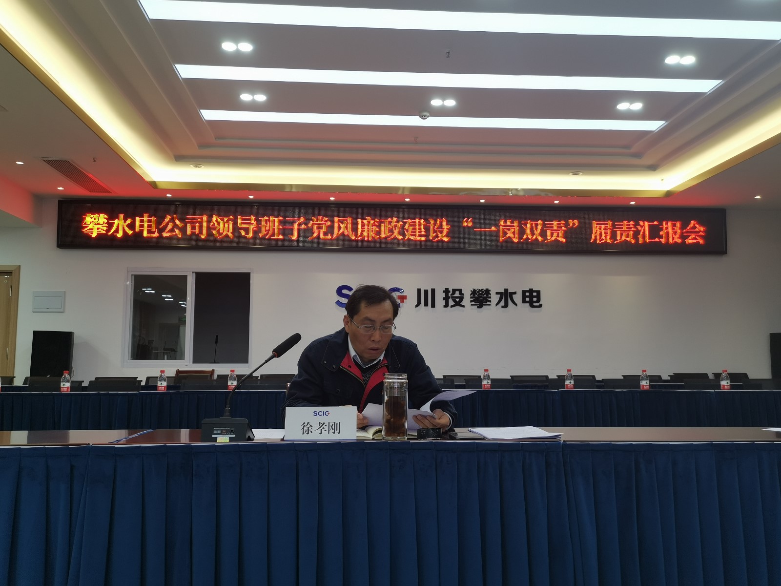 為貫徹落實全面從嚴治黨總體要求,進一步強化公司黨總支全面從嚴治黨主體責任考核工作,根據中共中央辦公廳《黨委(黨組)落實全面從嚴治黨主體責任規(guī)定》以及川投能源黨委《落實全面從嚴治黨主體責任考核實施辦法》等相關規(guī)定要求。2021年12月13日,川投能源副總經理、攀水電公司黨總支書記、董事長徐孝剛組織召開專題會議,聽取4名領導班子成員(黨總支委員)落實黨風廉政建設“一崗雙責”情況匯報。