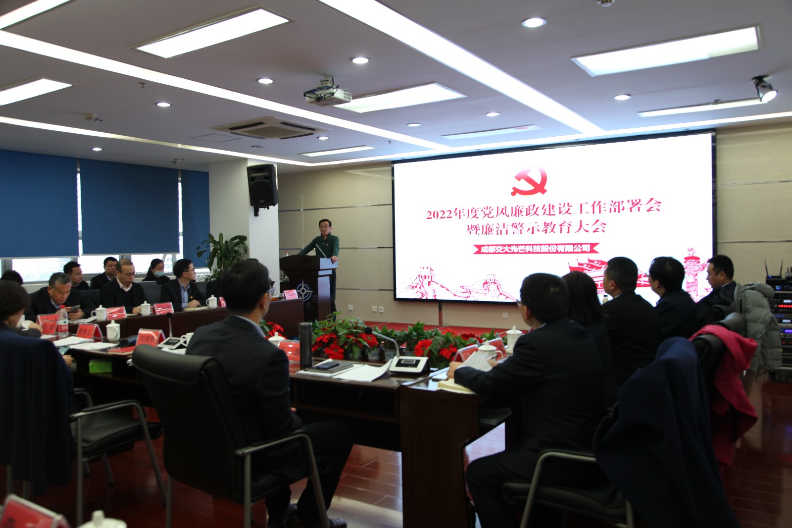 會(huì)上,劉成輝首先以《壓實(shí)兩個(gè)責(zé)任、全面從嚴(yán)治黨,以高質(zhì)量黨風(fēng)廉政建設(shè)護(hù)航企業(yè)高質(zhì)量發(fā)展》為題通報(bào)了交大光芒黨總支2021年落實(shí)全面從嚴(yán)治黨主體責(zé)任情況,代表領(lǐng)導(dǎo)班子成員作廉潔從業(yè)公開承諾,并與班子成員、各部門負(fù)責(zé)人分別簽訂了《2022年度領(lǐng)導(dǎo)干部“雙廉”責(zé)任書》。隨后,各分管副總分別就各自分管部門的全面從嚴(yán)治黨責(zé)任落實(shí)、黨風(fēng)廉政建設(shè)和反腐敗斗爭(zhēng)工作進(jìn)行了安排。