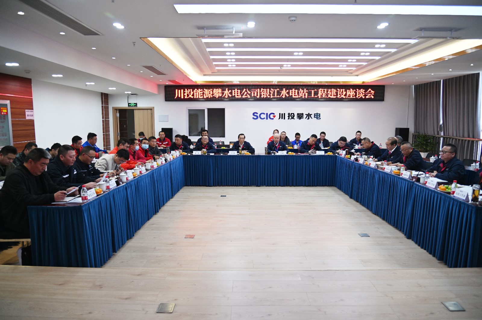 為全面總結(jié)2021年度工程建設(shè)情況,安排部署2022年度重點(diǎn)工作,加強(qiáng)與各參建單位在工程建設(shè)、服務(wù)合作等方面溝通交流,近日,公司組織召開了銀江水電站工程建設(shè)座談會(huì),川投能源副總經(jīng)理、公司黨總支書記、董事長徐孝剛,公司領(lǐng)導(dǎo)、各部門負(fù)責(zé)人及全體員工,各參建單位項(xiàng)目主要負(fù)責(zé)人等共計(jì)60余人參加會(huì)議,會(huì)議由公司黨總支委員、總經(jīng)理吳巍嶼主持。