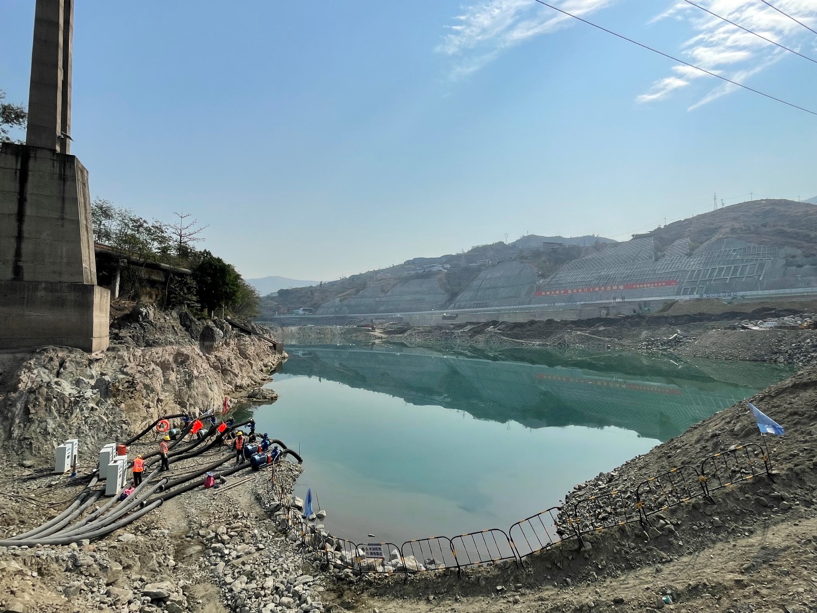 面對二期圍堰工期緊等實際困難,公司組織施工單位合理配置施工資源,精心組織現(xiàn)場施工,水電五局項目部領導春節(jié)期間帶頭堅守崗位,施工現(xiàn)場正常組織施工,順利完成二期圍堰閉氣重要節(jié)點目標,下一階段將重點做好圍堰加高培厚及土工膜安裝工作,確保汛前能按期完成施工;面對銀江大橋爭取2023年春節(jié)前具備通車條件的要求,公司認真組織審核施工方案,督促落實各項安全措施,重點關注掛籃安裝等工作,1#橋墩0#節(jié)段、右岸連接道路、下穿箱涵開挖等全部按照計劃順利推進;面對左岸邊坡開挖支護、G353國道改建與污水管道代建及地下管線遷改存在的施工干擾問題,公司積極與政府部門及主要參建單位溝通協(xié)商,明確布置方案及節(jié)點目標,做好交叉施工保障措施,各項工作正按照既定目標有序推進;面對即將來臨的汛期,公司提前組織開展地災隱患排查工作,針對檢查發(fā)現(xiàn)的問題下發(fā)整改通知,并督促施工單位認真整改,確保汛前完成整改工作。