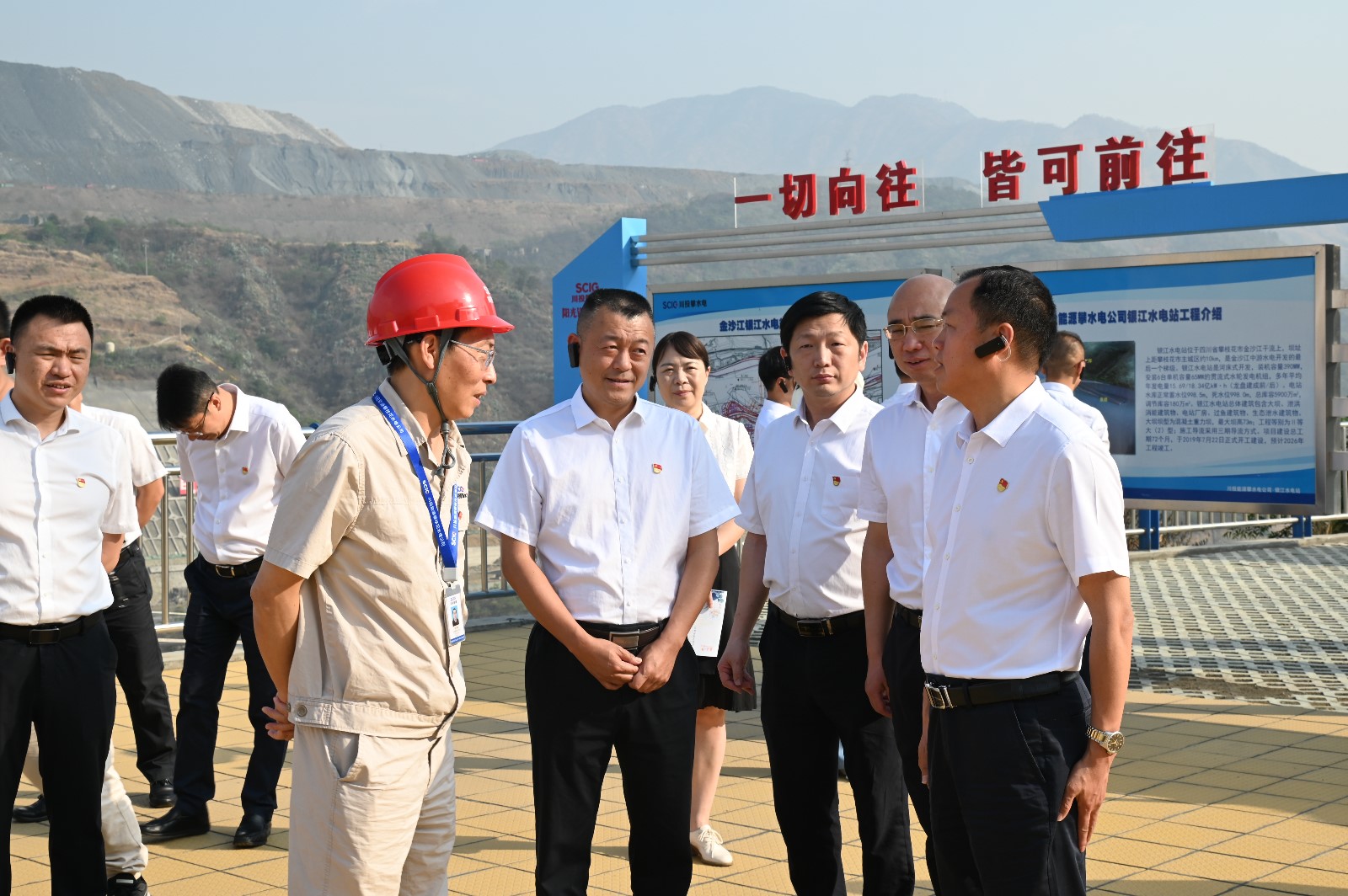 徐孝剛就金沙江中游水電“一庫十級”規(guī)劃布局以及銀江水電站工程建設階段規(guī)劃、進度進展、重大意義等進行了詳細匯報,并介紹了攀水電公司堅持黨建引領、堅持監(jiān)督護航、堅持綠色發(fā)展,把銀江水電站建設成為精品工程、樣板工程、陽光工程的初心使命。趙平及工作組的同志認真聽取了介紹,參觀了攀水電公司“陽光銀江大黨建”宣傳陣地,對川投集團、川投能源以及銀江水電站勇立改革潮頭、勇挑社會責任、勇于追求卓越的姿態(tài)予以了肯定,表示要進一步加強地企共建,交流互鑒,互促互進,不斷加強監(jiān)督執(zhí)紀,優(yōu)化營商環(huán)境,切實為銀江水電站這個省市兩級重點工程保好駕、護好航、服好務,期待高峽平湖早日躍然眼前!