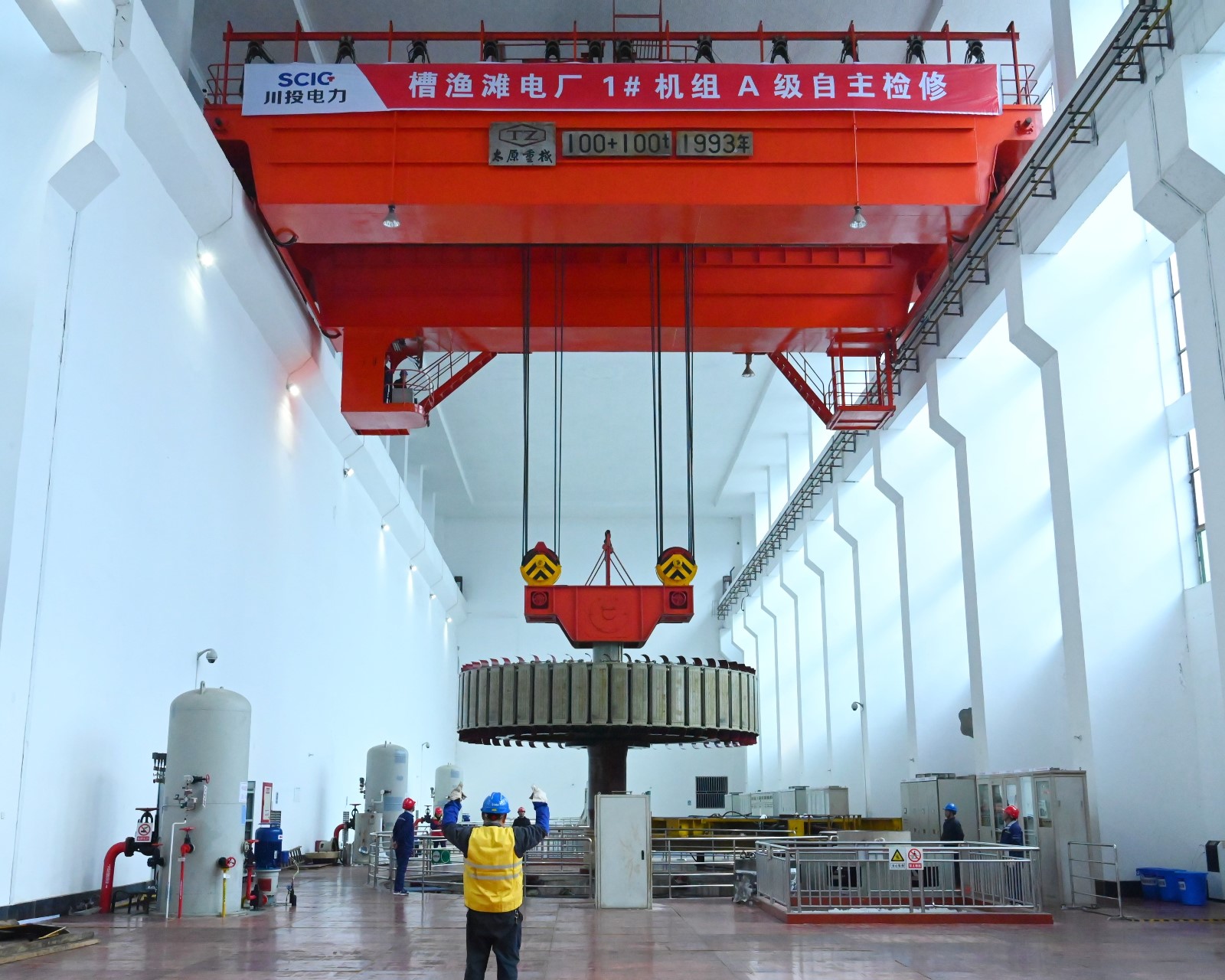 槽漁灘電廠(chǎng)按計(jì)劃開(kāi)展了1#機(jī)組大修,2021年12月1日開(kāi)工,2002年2月15日機(jī)組成功并網(wǎng)發(fā)電,檢修工期僅僅用了65天。參檢人員提前編制發(fā)電機(jī)轉(zhuǎn)子、轉(zhuǎn)輪吊裝方案,明確人員職責(zé),檢查并調(diào)校行車(chē)、吊具,規(guī)劃行徑路線(xiàn),在檢修團(tuán)隊(duì)通力協(xié)作下,均一次性安全順利吊出。2#、3#機(jī)組C修以及1#主變小修、2#主變大修也于4月5日全部完工;目前正持續(xù)推進(jìn)線(xiàn)路保護(hù)改造工作。