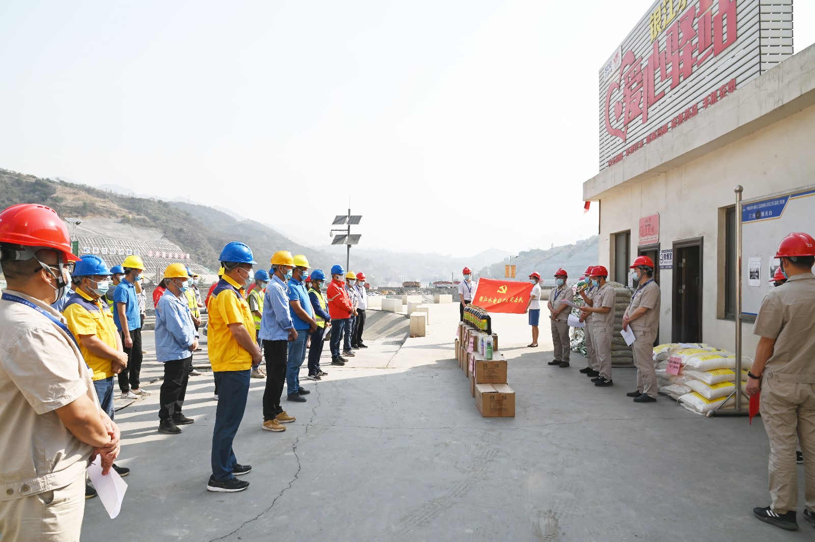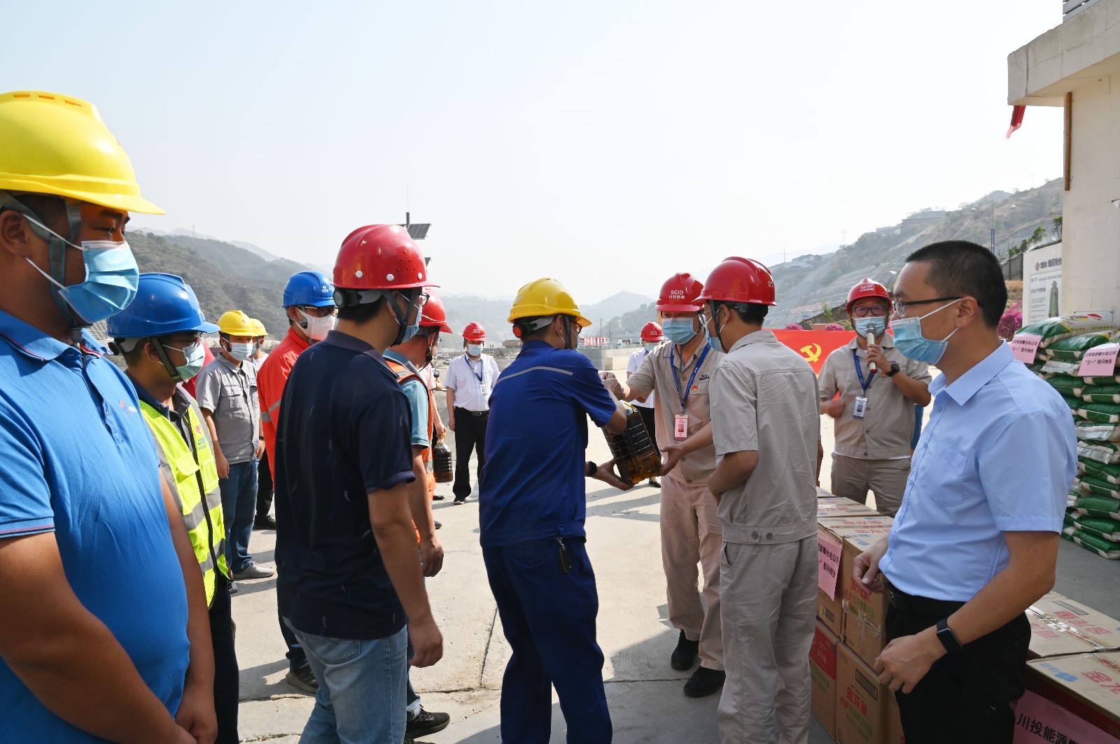 “五一”國際勞動節(jié)前夕,4月30日上午,川投能源副總經(jīng)理、攀水電公司黨總支書記、董事長徐孝剛帶隊(duì)來到銀江水電站愛心驛站,慰問冒著高溫酷暑戰(zhàn)斗在銀江水電站工程一線的建設(shè)者們。慰問活動由公司黨總支委員、董事會秘書、工會主席鄧勇主持,公司在攀領(lǐng)導(dǎo)、黨員先鋒隊(duì)及志愿者服務(wù)隊(duì)共20余人參加慰問。