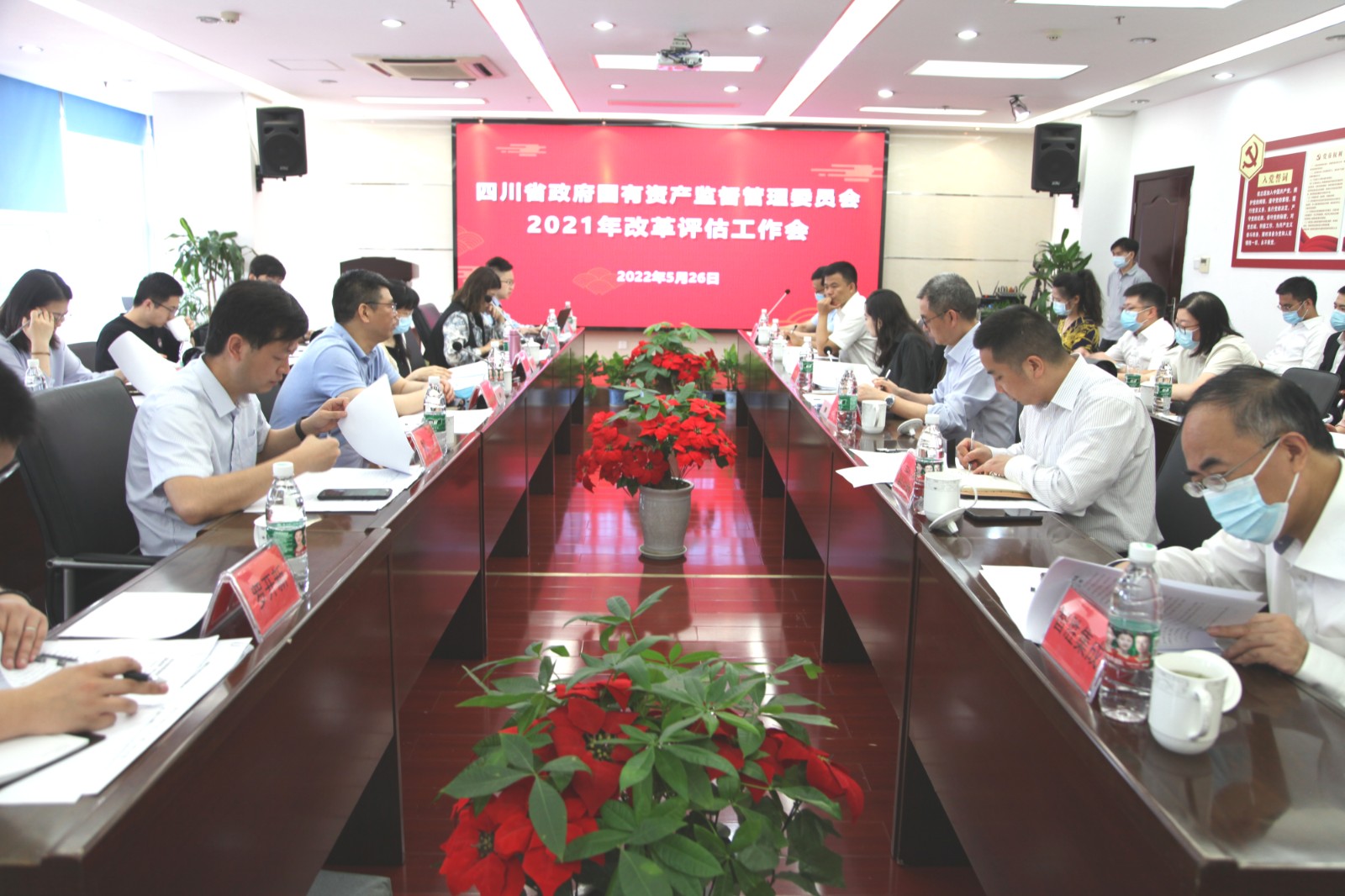 2022年5月26日上午,省國資委改革處處長肖代勇率評估組在交大光芒生產(chǎn)基地多功能會議室召開2021年川投集團改革評估工作會。此次評估由省國資委會同中智咨詢公司組成評估組,旨在深入了解省屬企業(yè)及下屬天府綜改企業(yè)各項任務進展情況、對各省屬企業(yè)2021年度國企改革三年行動落實情況進行客觀評估。國資委改革處副處長梅潔、企業(yè)領(lǐng)導人員管理處副處長王瑾、黨建工作處劉濤等出席評估會。川投集團總經(jīng)理助理、戰(zhàn)略投資部部長田傳平率集團公司相關(guān)部門負責人參會,川投集團所屬“天府綜改”企業(yè)智勝集成和交大光芒一并參加接受評估,“雙百行動”企業(yè)華西牙科、“科改示范”企業(yè)宏明電子相關(guān)領(lǐng)導以及川投能源黨委委員、總會計師劉好、董事會秘書魯晉川列席評估會。