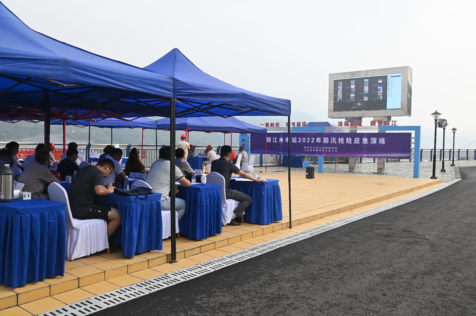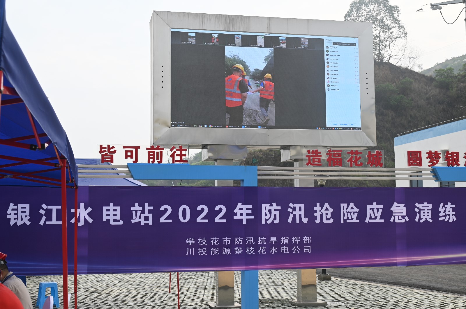 6月25日,攀水電公司組織開展銀江水電站2022年防汛搶險應(yīng)急演練,演練由公司黨總支委員、董事會秘書、工會主席鄧勇主持,公司黨總支委員、總經(jīng)理、防汛防地災(zāi)領(lǐng)導(dǎo)小組組長吳巍嶼擔(dān)任演練總指揮。攀枝花市防汛抗旱指揮部副指揮長、市水利局總工程師徐顯德,川投能源副總經(jīng)理、攀水電公司黨總支書記、董事長、攀新能源公司董事長、防汛防地災(zāi)領(lǐng)導(dǎo)小組組長徐孝剛出席演練活動。