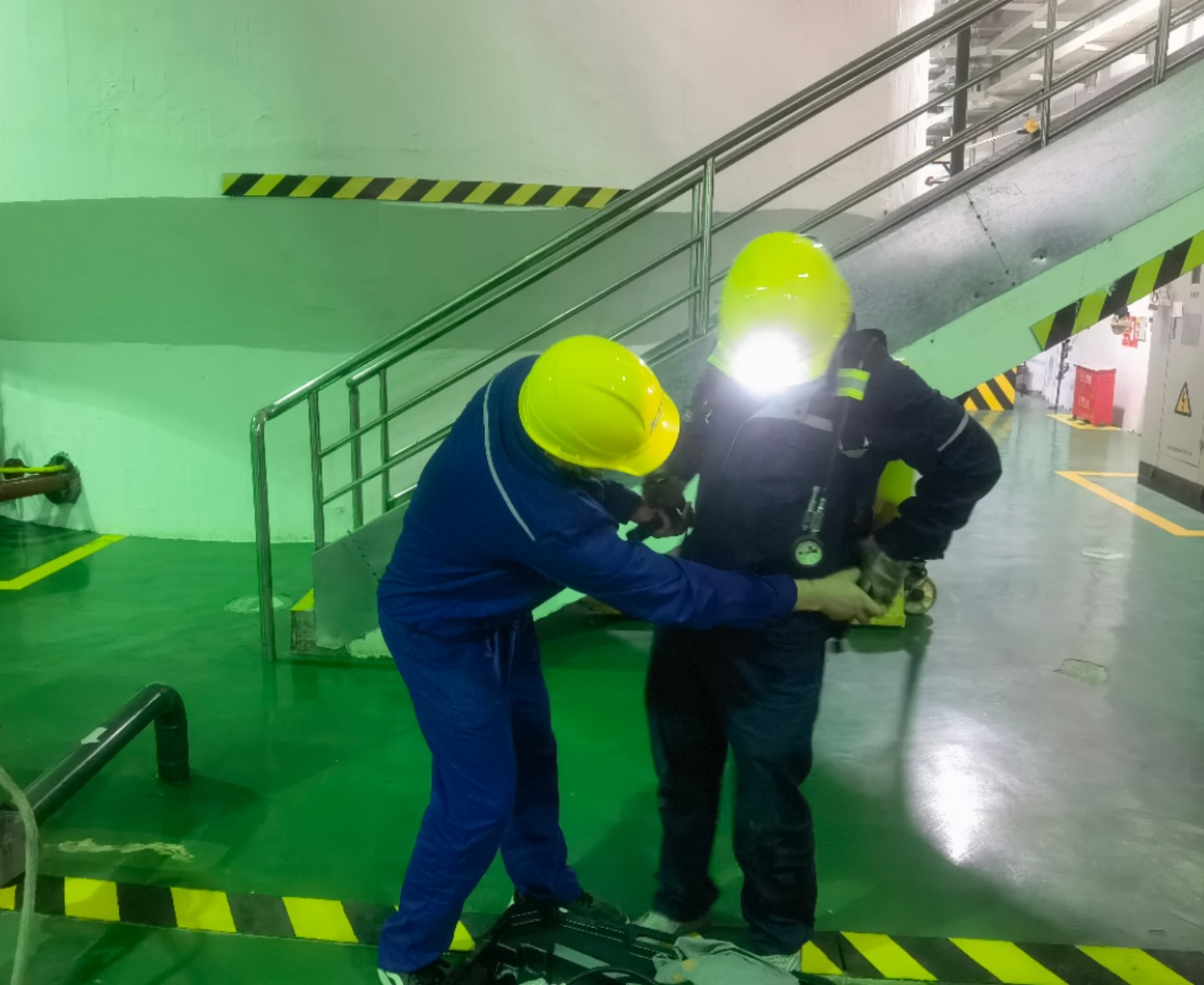 此次演練分為檢驗(yàn)有限空間作業(yè)事故現(xiàn)場(chǎng)應(yīng)急處置程序和應(yīng)急救援設(shè)備設(shè)施使用兩個(gè)科目。