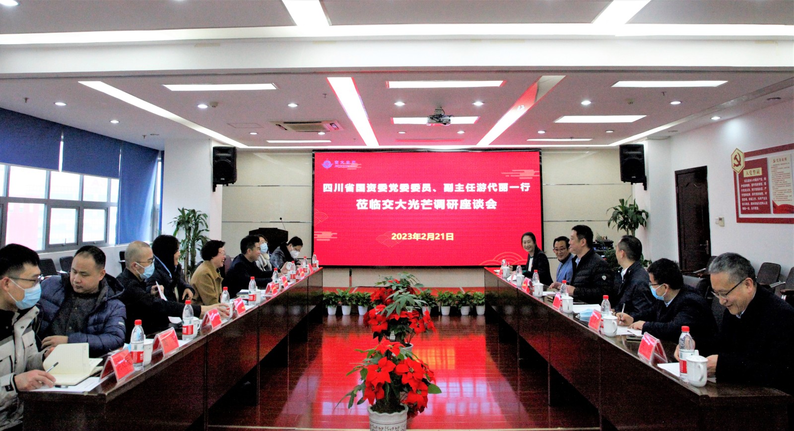 2月21日,省國資委黨委委員、副主任游代麗率隊赴交大光芒調(diào)研指導(dǎo)工作,省國資委巡視員符定平、財務(wù)監(jiān)督與評價處、監(jiān)督工作處、企業(yè)改革處一同參加調(diào)研。川投集團(tuán)財務(wù)總監(jiān)黃勁、資金財務(wù)部部長葉光明隨同調(diào)研。交大光芒黨總支書記、總經(jīng)理劉成輝以及經(jīng)營班子成員、黨總支委員參加調(diào)研座談會。
