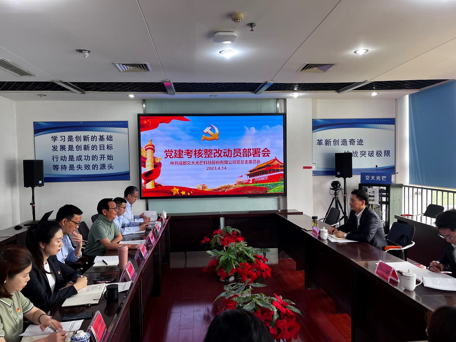 根據(jù)川投能源黨委抓基層黨建工作述職點評意見整改工作方案和對交大光芒黨總支2022年度黨建工作的點評意見,交大光芒黨總支舉一反三查找問題和不足并針對性制定整改方案,于2023年4月14日召開黨建考核整改動員部署會。川投能源黨委副書記、工會主席冉蘭平,團總支書記李睿到會督導。黨總支書記、總經(jīng)理劉成輝主持會議并作整改動員講話。