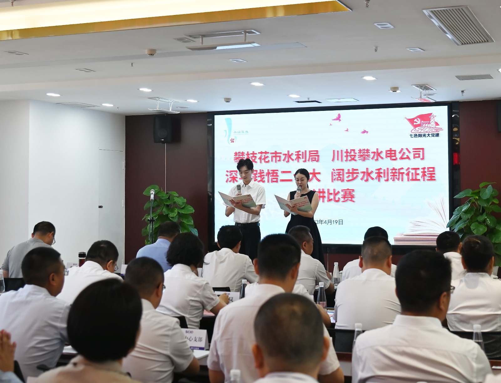 為全面貫徹黨的二十大精神,扎實開展學(xué)習(xí)貫徹習(xí)近平新時代中國特色社會主義思想主題教育,在攀水電黨總支開展主題教育領(lǐng)導(dǎo)干部讀書班期間,為豐富學(xué)習(xí)形式,營造濃厚學(xué)習(xí)氛圍,近日,攀水電公司與攀枝花市水利局共同舉辦了“深學(xué)踐悟二十大、闊步水利新征程”深化“水潤花城”黨建品牌建設(shè)暨政企黨組織共建活動,開展征文和演講比賽。攀枝花市直機關(guān)工委常務(wù)副書記鮮明,攀枝花市水利局黨組成員、副局長林兆東,黨組成員、機關(guān)黨委書記胡嘉,川投能源副總經(jīng)理、攀水電公司黨總支書記、董事長、攀新能源董事長徐孝剛及讀書班成員參加此次活動并擔任評委。