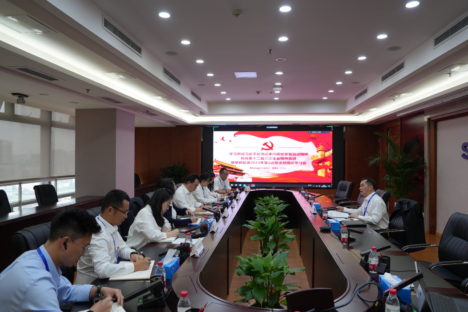 攀新能源領(lǐng)導(dǎo)班子成員及全體員工參加專(zhuān)題宣講,公司全體黨員參加黨支部理論學(xué)習(xí)會(huì)。