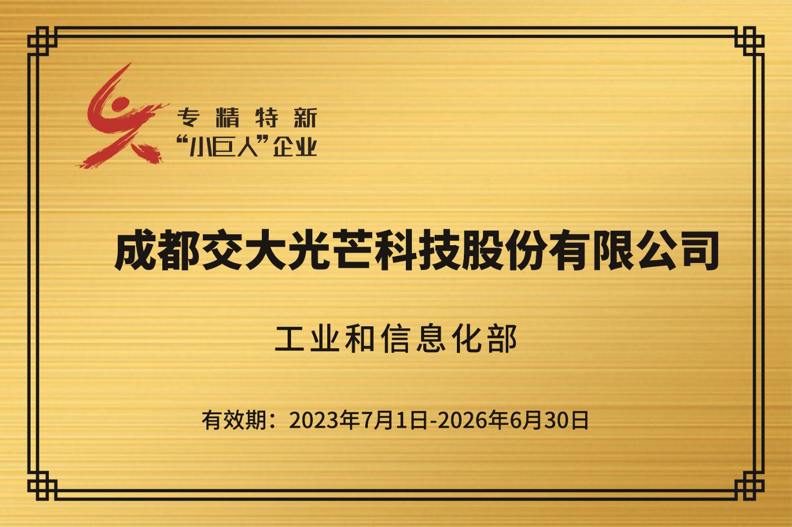 日前,國(guó)家工業(yè)和信息化部公布《關(guān)于第五批專精特新“小巨人”企業(yè)和通過復(fù)核的第二批專精特新“小巨人”企業(yè)名單的通告》,成都交大光芒科技股份有限公司被授予專精特新“小巨人”稱號(hào)。