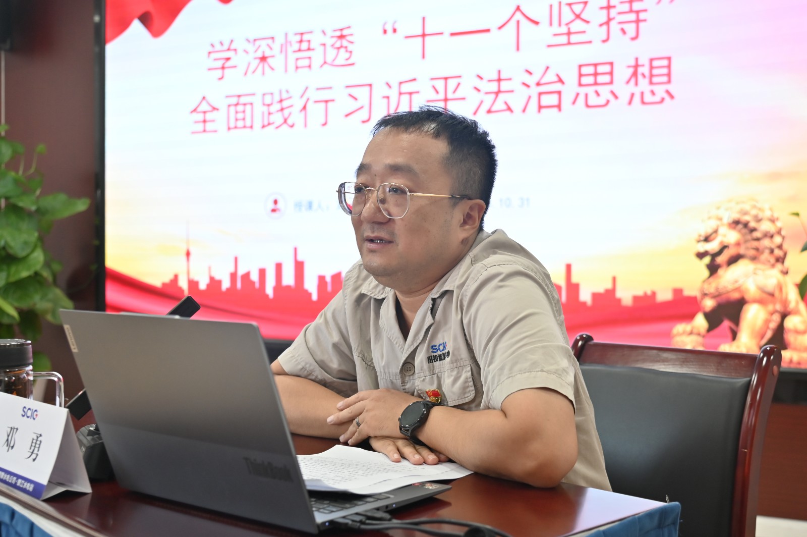 會上,公司黨總支副書記、董事會秘書、工會主席鄧勇以“學(xué)深悟透‘十一個(gè)堅(jiān)持’,全面踐行習(xí)近平法治思想”為題,從習(xí)近平法治思想的核心理念、總體部署、關(guān)鍵舉措、重要成果四個(gè)方面做了系統(tǒng)闡述,詳細(xì)解讀了學(xué)深悟透“十一個(gè)堅(jiān)持”的內(nèi)在邏輯和豐富內(nèi)涵,進(jìn)一步深化了公司員工對習(xí)近平法治思想的理解和認(rèn)識。