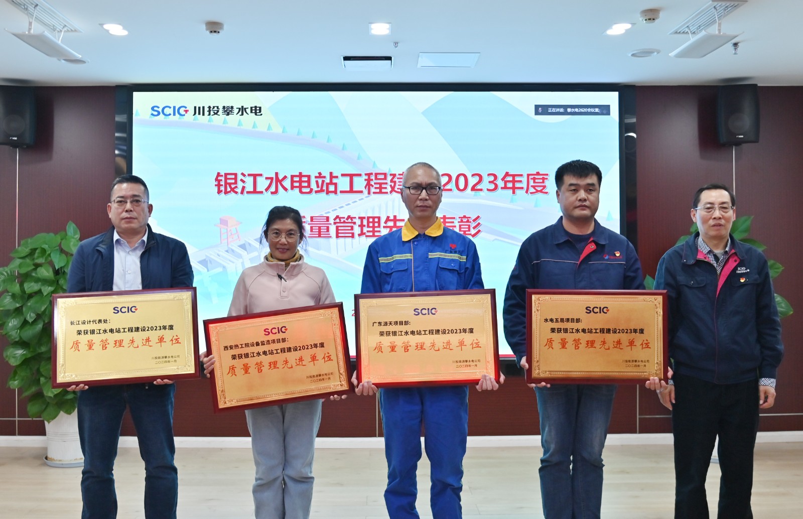 會上,公司副總經(jīng)理唐伽宣讀了《關(guān)于表彰銀江水電站2023年度質(zhì)量管理先進單位、先進集體和先進個人的通報》文件,徐孝剛向榮獲2023年度質(zhì)量管理先進單位的長江設(shè)計代表處、西安熱工院設(shè)備監(jiān)造項目部、水電五局項目部、廣東源天項目部頒發(fā)了獎牌;公司黨總支副書記、董事會秘書、工會主席鄧勇,公司黨總支委員、紀(jì)檢小組長楊銳向榮獲先進集體的長江設(shè)計代表處壩工專業(yè)組、貴陽院監(jiān)理部土建工程管理部、西安熱工院設(shè)備監(jiān)造項目部駐哈電監(jiān)造站、水電七局項目部砂石工區(qū)、水電五局項目部土建三隊、廣東源天項目部主機班等13個集體頒發(fā)了獎牌。徐孝剛向獲獎的單位、集體及個人表示了祝賀,要求他們在今后的質(zhì)量管理工作中發(fā)揮好先鋒模范帶頭作用,促進各參建單位共同提高質(zhì)量管理水平,把銀江水電站建設(shè)成“精品工程、樣板工程、陽光工程”。