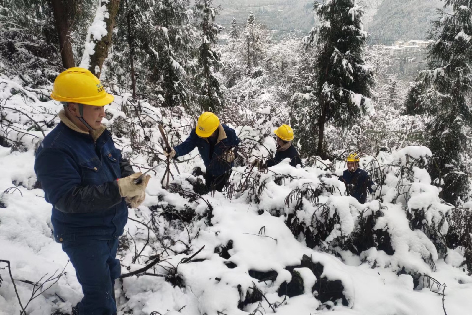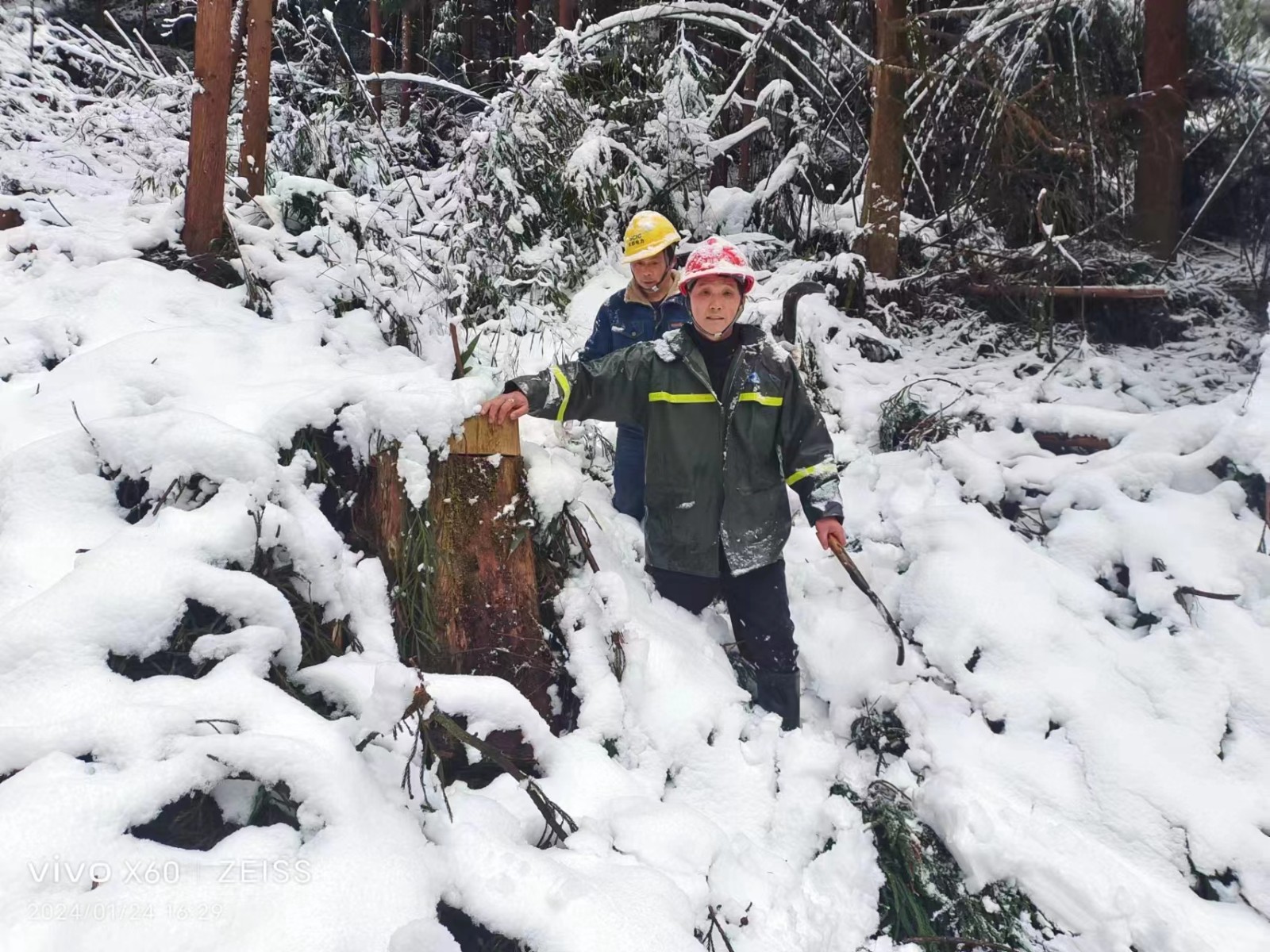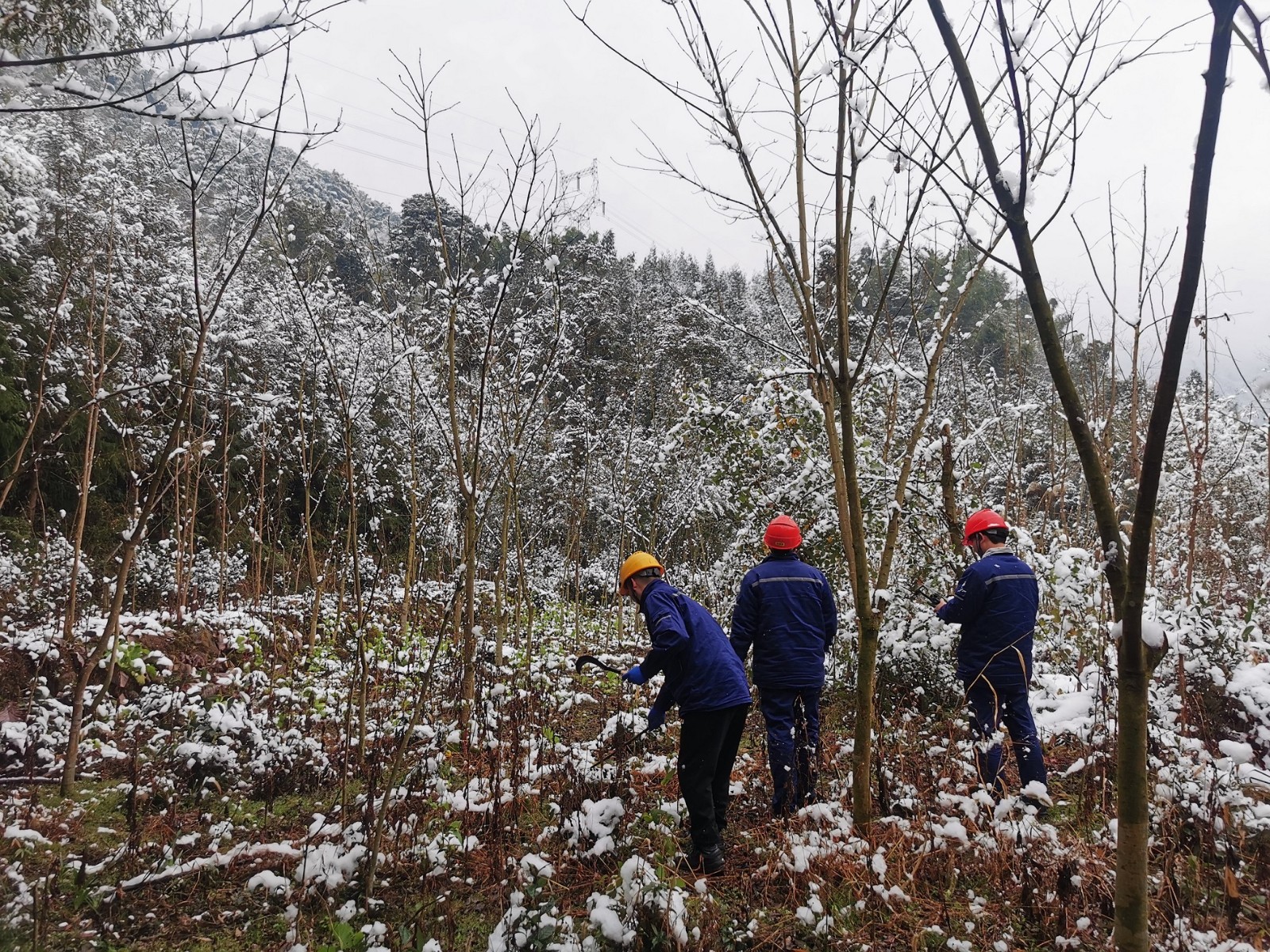 1月23日,天彭電力制定詳細(xì)的樹障清理計劃。巡線員手持砍刀,翻山越嶺,負(fù)重前行,踩著嘎吱作響的積雪,迎著刀割般的寒風(fēng),迅速開始對110kV鳳回線、10kV沙橋線、鳳通線等線路設(shè)備進行巡查,對倒伏在線路的竹樹進行“圍剿”,共清理樹枝、竹子共110余棵,現(xiàn)場巡線員盡管臉凍得通紅、手凍得僵硬、腳凍得麻木,仍有條不紊地開展工作,經(jīng)過一天的辛勤巡檢,線路和設(shè)備均運行正常。