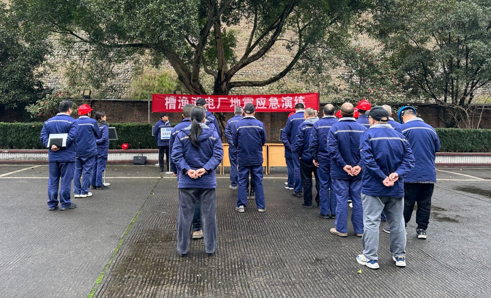 玉田電廠開展了一場模擬場景為甘洛縣境內(nèi)發(fā)生4.6級地震應(yīng)急演練。隨著警報聲響起,全體工作人員立刻進入應(yīng)急狀態(tài),充分利用現(xiàn)場空間條件進行避險,在確保人身安全的條件下,對廠區(qū)、辦公樓和大壩等關(guān)鍵區(qū)域進行全面檢查和應(yīng)急處置;值長向總指揮匯報人員及設(shè)備情況,值班員通過衛(wèi)星電話與大壩值班人員保持溝通,了解大壩地震后的狀況;安全管理人員匯報了人員撤離疏散情況,總指揮經(jīng)過全面分析和研判后,立即啟動《玉田電廠地震災(zāi)害應(yīng)急預(yù)案》,各應(yīng)急工作組按照預(yù)案展開行動,并向上級主管部門匯報初步影響及現(xiàn)場處置情況,運維班組巡查設(shè)備設(shè)施并啟動柴油發(fā)電機保障生產(chǎn)生活用電;搶險救災(zāi)組排查全廠水工設(shè)施及周邊山體安全,設(shè)置警示隔離帶和標示牌;后勤保障組開展安保及道路巡查工作,檢查綜合樓用電、用水,及時發(fā)放應(yīng)急物資,保障人員生活所需;大壩運維人員全面檢查大壩水工建筑物及設(shè)備設(shè)施運行情況,啟動應(yīng)急柴油發(fā)電機,控制水庫水位在安全范圍內(nèi)。本次演練有序高效,各工作組反應(yīng)迅速,協(xié)調(diào)聯(lián)動,有效減輕了地震災(zāi)害影響,確保了人員和財產(chǎn)安全。