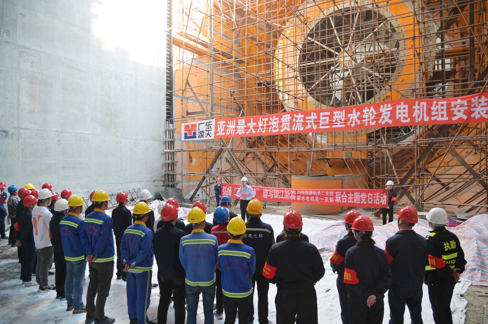 在銀江水電站亞洲最大燈泡貫流式巨型水輪發(fā)電機組安裝現(xiàn)場,川投能源機關(guān)二支部書記李睿講授了工地微黨課《承諾》,與大家一起重溫銀江水電站建設(shè)過程中的感人故事?;顒又?,徐孝剛用通俗易懂的語言,為現(xiàn)場同志介紹了銀江水電站的建設(shè)特點、施工情況和下一步工程建設(shè)計劃,并號召全體黨員和團員青年要圍繞“保一爭二”提前發(fā)電重要目標(biāo),團結(jié)一心、勇挑重?fù)?dān)、善作善成。