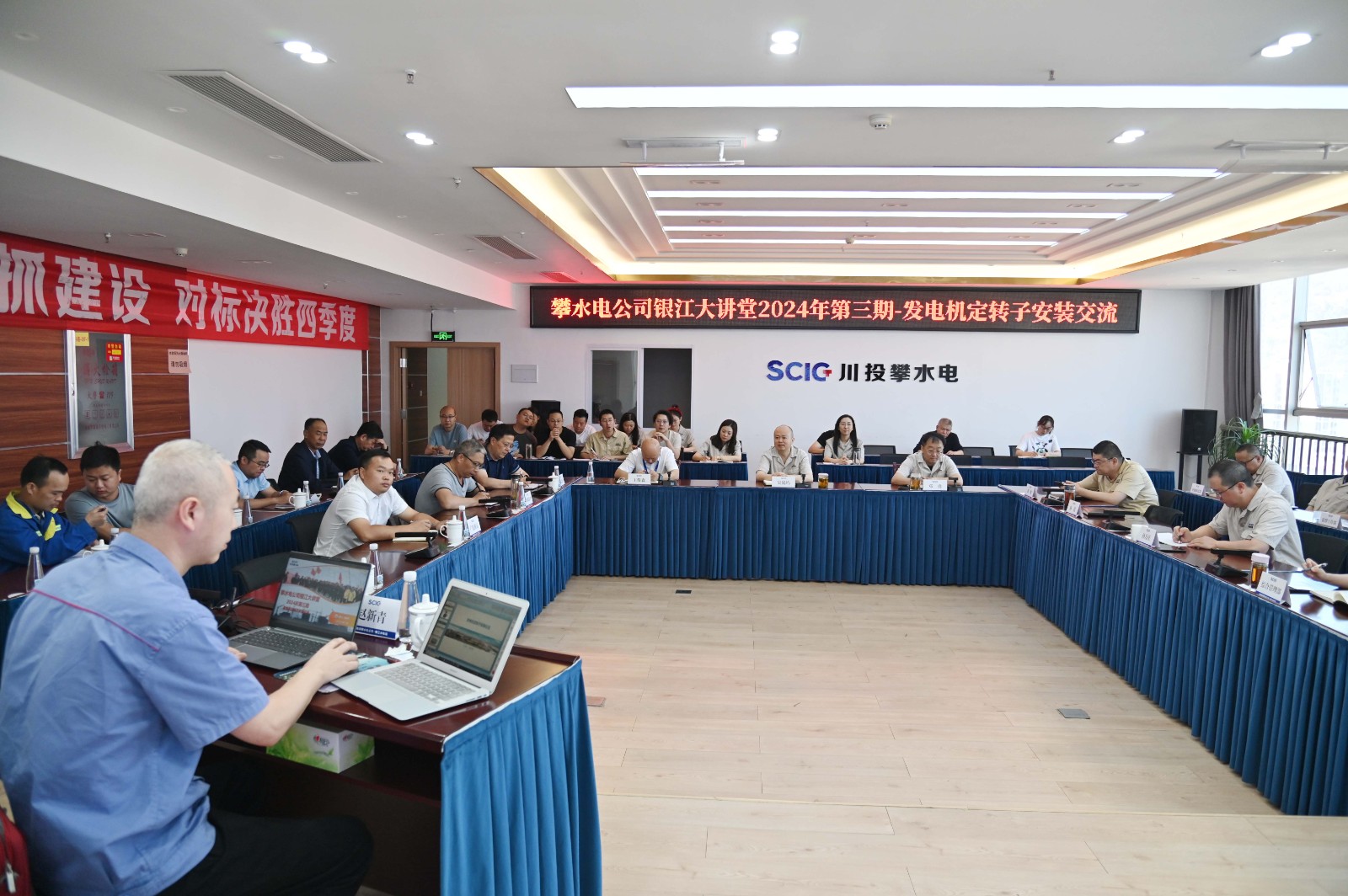 在銀江水電站主廠房橋機(jī)順利安裝完成,即將進(jìn)行水輪發(fā)電機(jī)組定轉(zhuǎn)子組裝之際,攀水電公司邀請哈爾濱電機(jī)廠有限責(zé)任公司高級工程師趙新青,在銀江大講堂上給公司各部門及各參建單位,作了題為《發(fā)電機(jī)定轉(zhuǎn)子安裝》的技術(shù)交流課,公司領(lǐng)導(dǎo)、各部門及各參建單位相關(guān)人員共30余人參加培訓(xùn)。