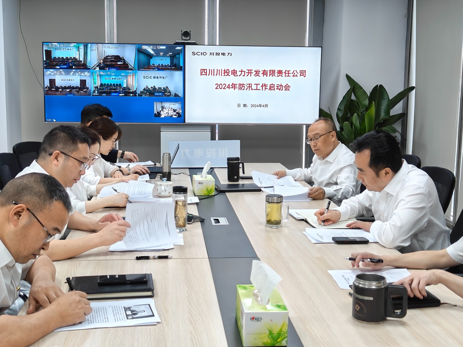 2024年4月23日上午,川投電力召開2024年防汛工作啟動(dòng)會(huì),公司黨委書記、董事長(zhǎng)、防汛領(lǐng)導(dǎo)小組組長(zhǎng)楊濤,黨委副書記、總經(jīng)理、防汛領(lǐng)導(dǎo)小組常務(wù)副組長(zhǎng)蔡承德出席并講話,副總經(jīng)理、防汛領(lǐng)導(dǎo)小組副組長(zhǎng)、防汛辦公室主任王偉主持會(huì)議。