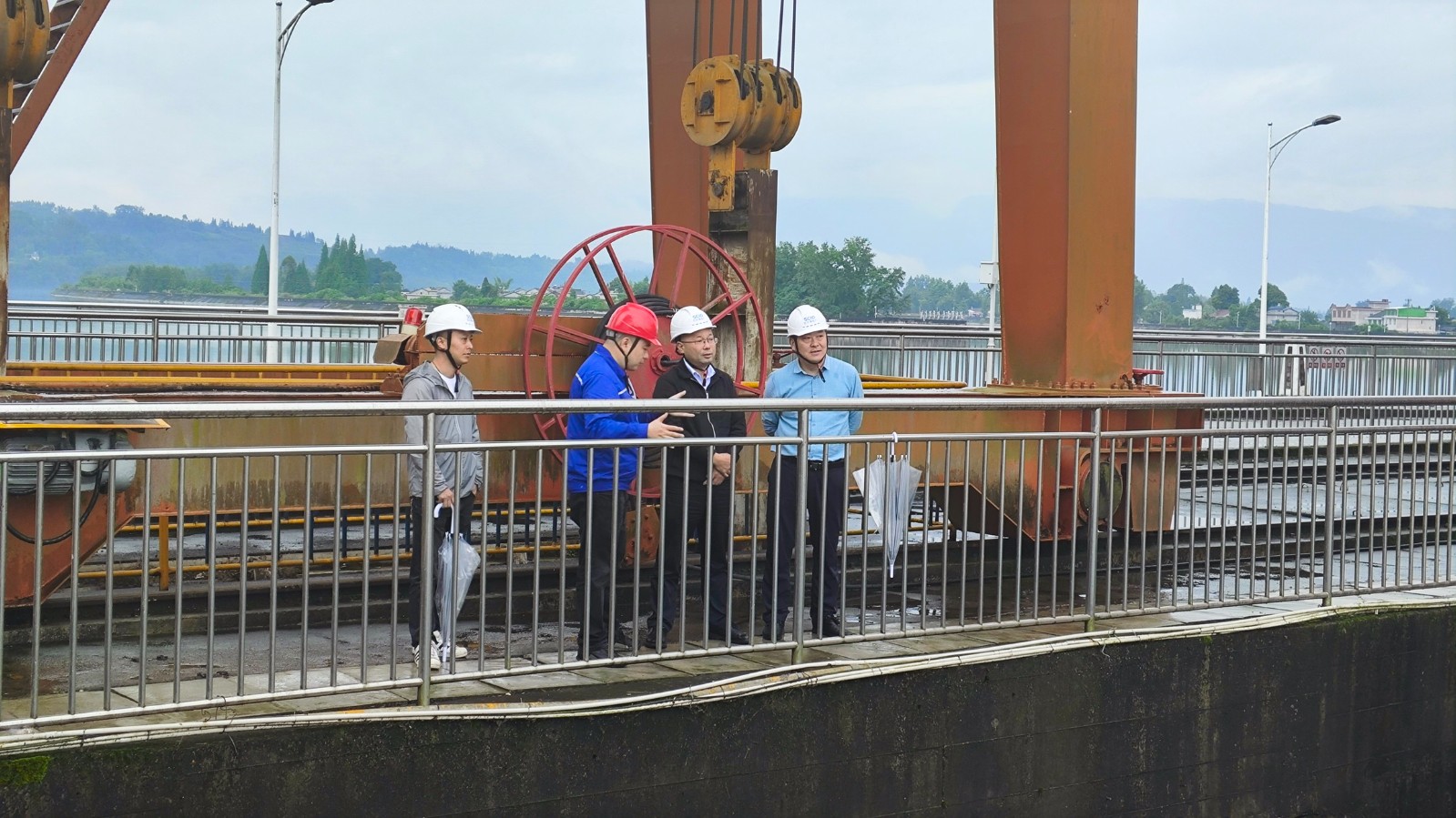 楊傳華一行實(shí)地察看電廠前池庫(kù)區(qū)、大壩、泄洪沖沙閘等工程,對(duì)防汛工作落實(shí)情況、應(yīng)急預(yù)案修訂、監(jiān)測(cè)預(yù)警與聯(lián)動(dòng)、應(yīng)急物資儲(chǔ)備工作情況進(jìn)行檢查,并現(xiàn)場(chǎng)聽取電廠防汛抗旱責(zé)任落實(shí)、水庫(kù)調(diào)度管理、極端天氣防范應(yīng)對(duì)措施等工作情況的匯報(bào)。