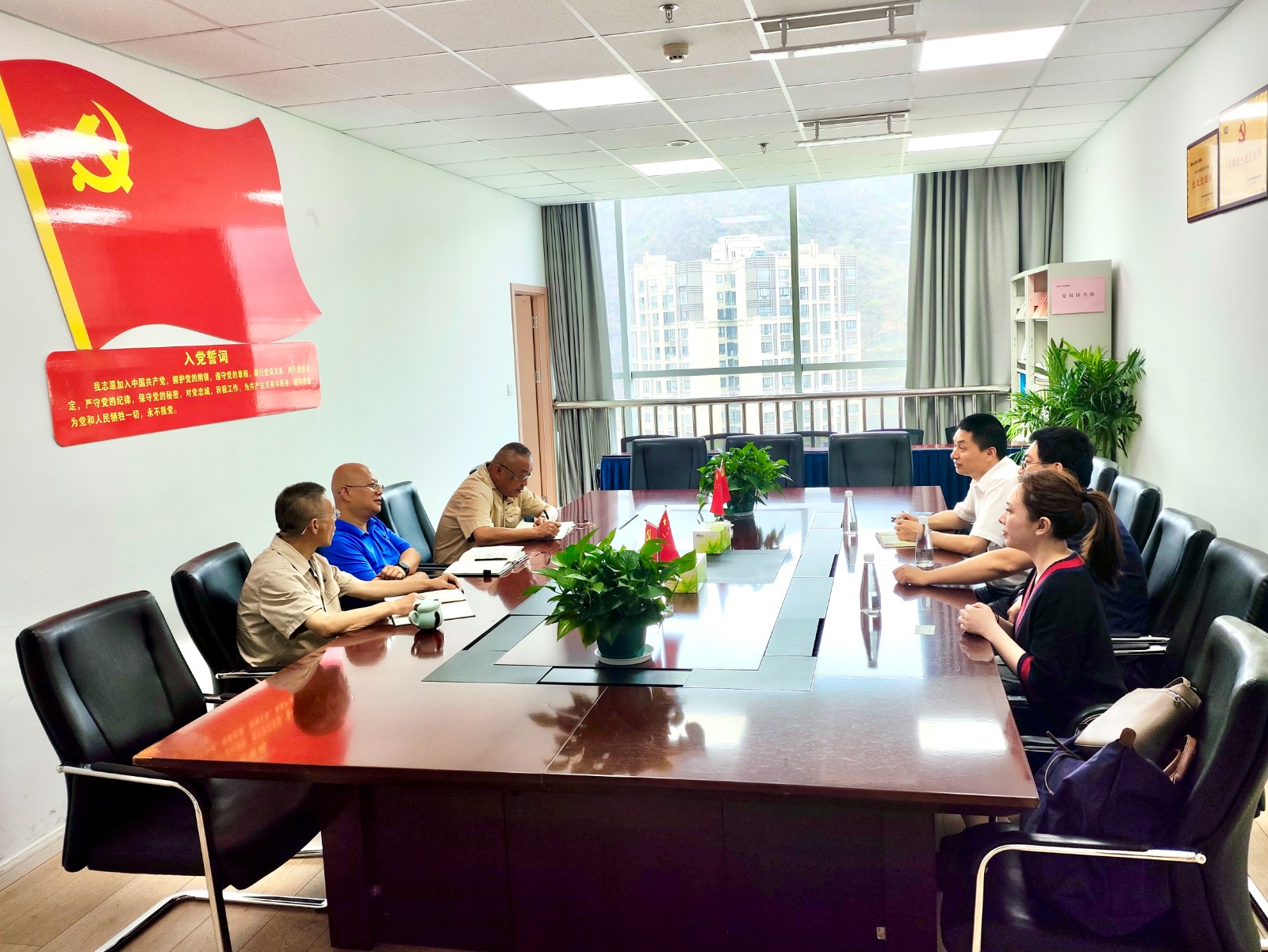 首先在攀水電公司辦公地召開了見面會(huì)。會(huì)上,王俊森介紹了銀江水電站的工程建設(shè)特點(diǎn)、現(xiàn)階段施工重點(diǎn)和安全生產(chǎn)組織機(jī)構(gòu)及人員配置情況等;尤其強(qiáng)調(diào)工程質(zhì)量及安全是今年“保一爭(zhēng)二”目標(biāo)實(shí)現(xiàn)的基礎(chǔ)。公司不斷采取措施提高全員安全責(zé)任意識(shí),強(qiáng)化質(zhì)量管控,確保質(zhì)量安全可控在控,堅(jiān)決杜絕安全事故發(fā)生,為全面實(shí)現(xiàn)今年發(fā)電目標(biāo)落地筑牢防線。黃超對(duì)攀水電公司長(zhǎng)期以來對(duì)平安產(chǎn)險(xiǎn)四川分公司的支持和信任致以感謝。他表示,平安產(chǎn)險(xiǎn)四川分公司為提高投保企業(yè)抗風(fēng)險(xiǎn)能力,協(xié)助開展風(fēng)險(xiǎn)減量和管控工作,因此在汛期到來之際,組織此次重大客戶工程項(xiàng)目的專項(xiàng)風(fēng)險(xiǎn)巡訪。