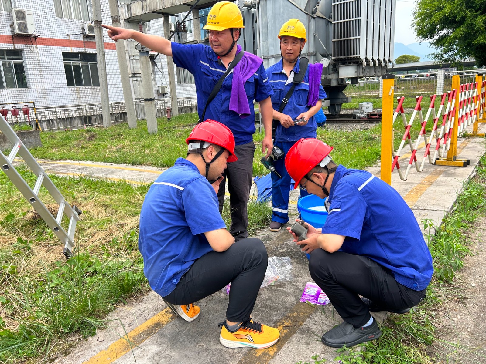 設(shè)備安全和檢修質(zhì)量是檢修工作的重中之重,本次檢修預試項目眾多、工作面廣、時間緊迫。各個專業(yè)小組熱火朝天地進行年檢預試工作。按照操作規(guī)程和流程完成了110KV升壓站電氣設(shè)備及其附屬設(shè)備的清掃、檢查、試驗工作;完成110KV魚天線1#-30#桿導線、避雷線防震錘及“T”至槽黃線工作;更換了110KV升壓站內(nèi)7組刀閘、2組CT端子箱,以及兩臺機組出口開關(guān)。消除隱患68項,消缺處理4項??釤犭y耐的陽光下檢修人員汗流浹背,滿臉黑油都顧不上擦,即便如此辛苦,他們依然堅持著,懷揣著電力人的使命感工作到了漫天星空。