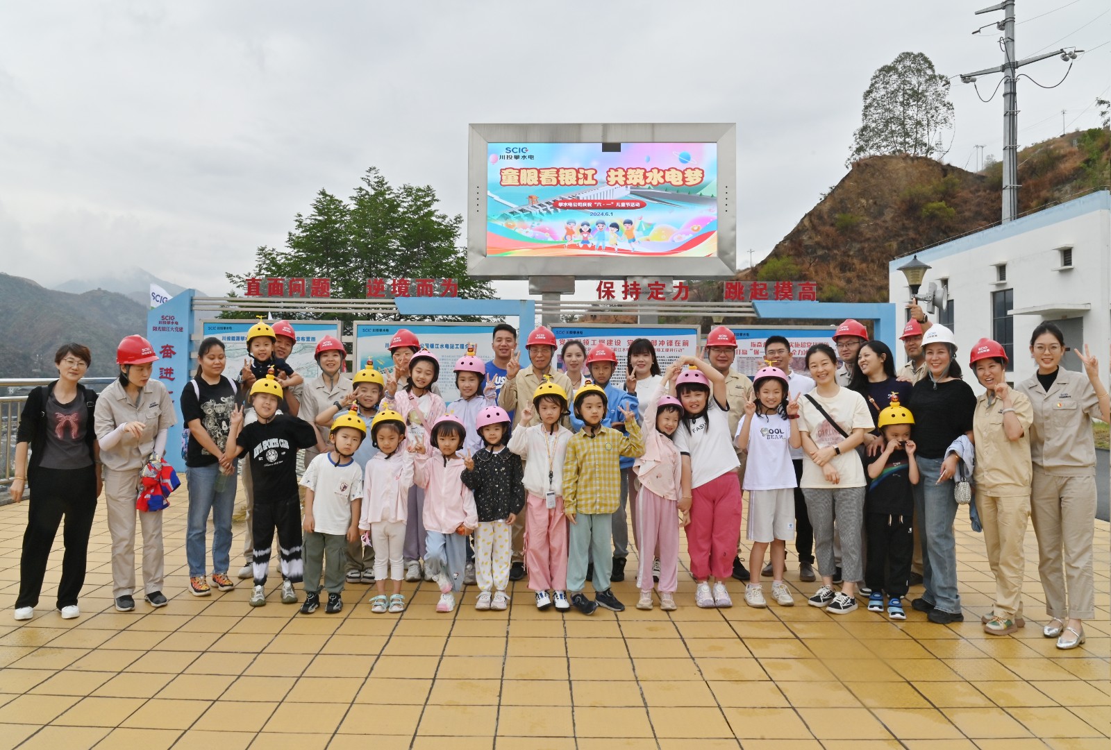 在“六一”國際兒童節(jié)之際,銀江水電站工地迎來了一群特殊的小嘉賓,為了切實關(guān)心關(guān)愛公司職工子女的健康成長,攀水電公司特別邀請職工子女到工地參觀,讓孩子們更好地了解父母的工作環(huán)境。攀水電公司黨總支書記、董事長徐孝剛,職工及子女、家屬代表共計40余人參加。