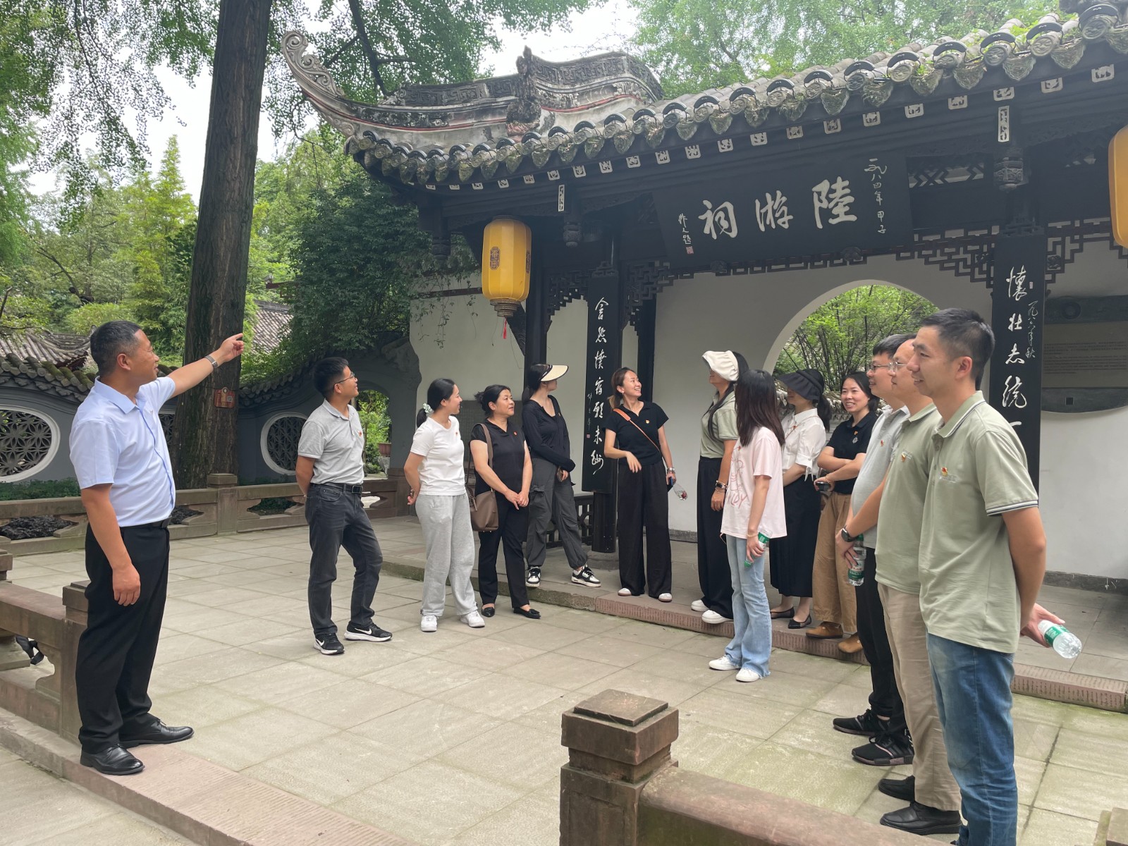最后,全體人員前往崇州罨畫池廉潔文化教育基地,參觀我國著名愛國詩人陸游祠堂、瞻仰陸游塑像、鑒賞陸游愛國詩詞書畫展、佇足放翁家訓(xùn)館學(xué)習(xí)優(yōu)秀家風(fēng)文化,支部書記王輝同志以《汲取中國傳統(tǒng)優(yōu)秀文化精髓涵養(yǎng)遵紀(jì)清廉新時代精神》為題給黨員上廉潔教育黨課。