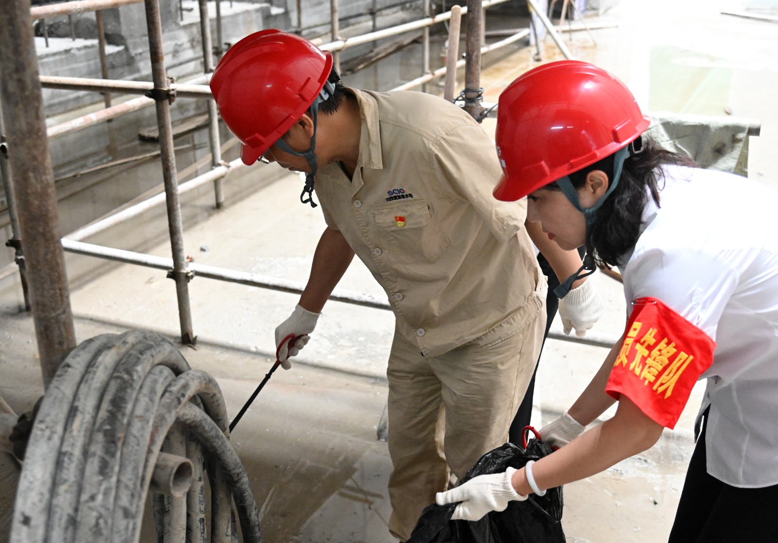 大家來(lái)到銀江水電站壩頂施工通道,對(duì)現(xiàn)場(chǎng)吊裝點(diǎn)及各施工作業(yè)面衛(wèi)生清潔區(qū)域進(jìn)行了清掃分工,各支部黨員同志沖鋒在前,主動(dòng)帶領(lǐng)其他黨員同志、志愿者對(duì)銀江水電站壩頂、壩頂至安裝間通道、安裝間、副廠(chǎng)房等區(qū)域進(jìn)行了衛(wèi)生清掃、垃圾清運(yùn),并協(xié)調(diào)了臨時(shí)堆放物資、安裝構(gòu)建的整理吊裝等,為后期轉(zhuǎn)子支架到達(dá)現(xiàn)場(chǎng)營(yíng)造了整潔、便捷的環(huán)境。