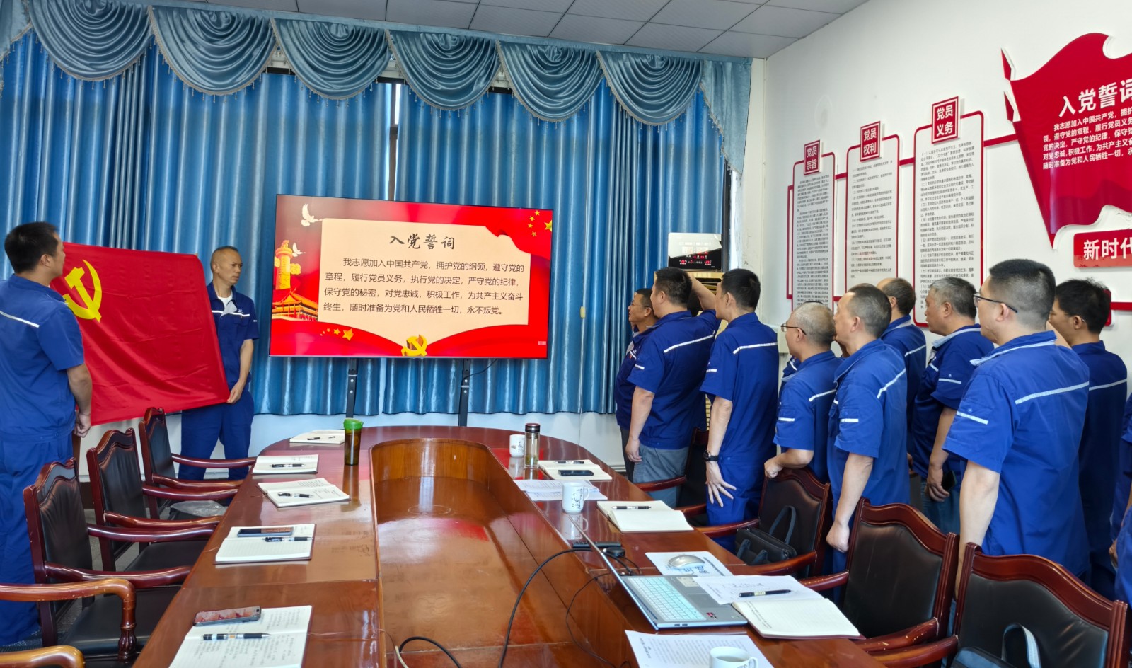 王力生以《黨的光輝歲月》為題講授黨課。深情回顧我們黨103年來的輝煌經(jīng)歷和艱辛探索,教育引導(dǎo)全體黨員深刻認(rèn)識(shí)到黨奮斗歷史的艱辛不易,緬懷革命先輩的豐功偉績(jī),傳承他們的革命精神。隨后,王力生帶領(lǐng)全體黨員面向黨旗,重溫入黨誓詞,堅(jiān)定理想信念。