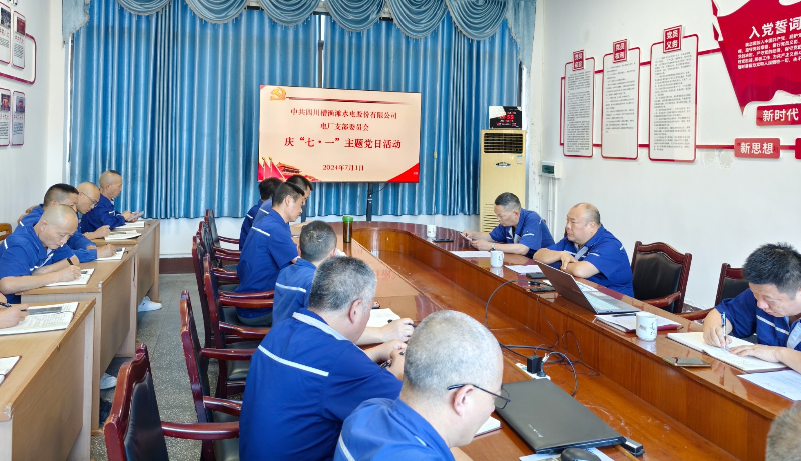 為切實(shí)增強(qiáng)黨員干部的紀(jì)律意識(shí),進(jìn)一步弘揚(yáng)偉大建黨精神,凝聚奮斗力量,7月1日,槽漁灘公司電廠黨支部開展“學(xué)黨紀(jì) 守初心”主題黨日活動(dòng)。公司黨支部書記、廠長(zhǎng)王力生主持,支部23名黨員參加活動(dòng)。