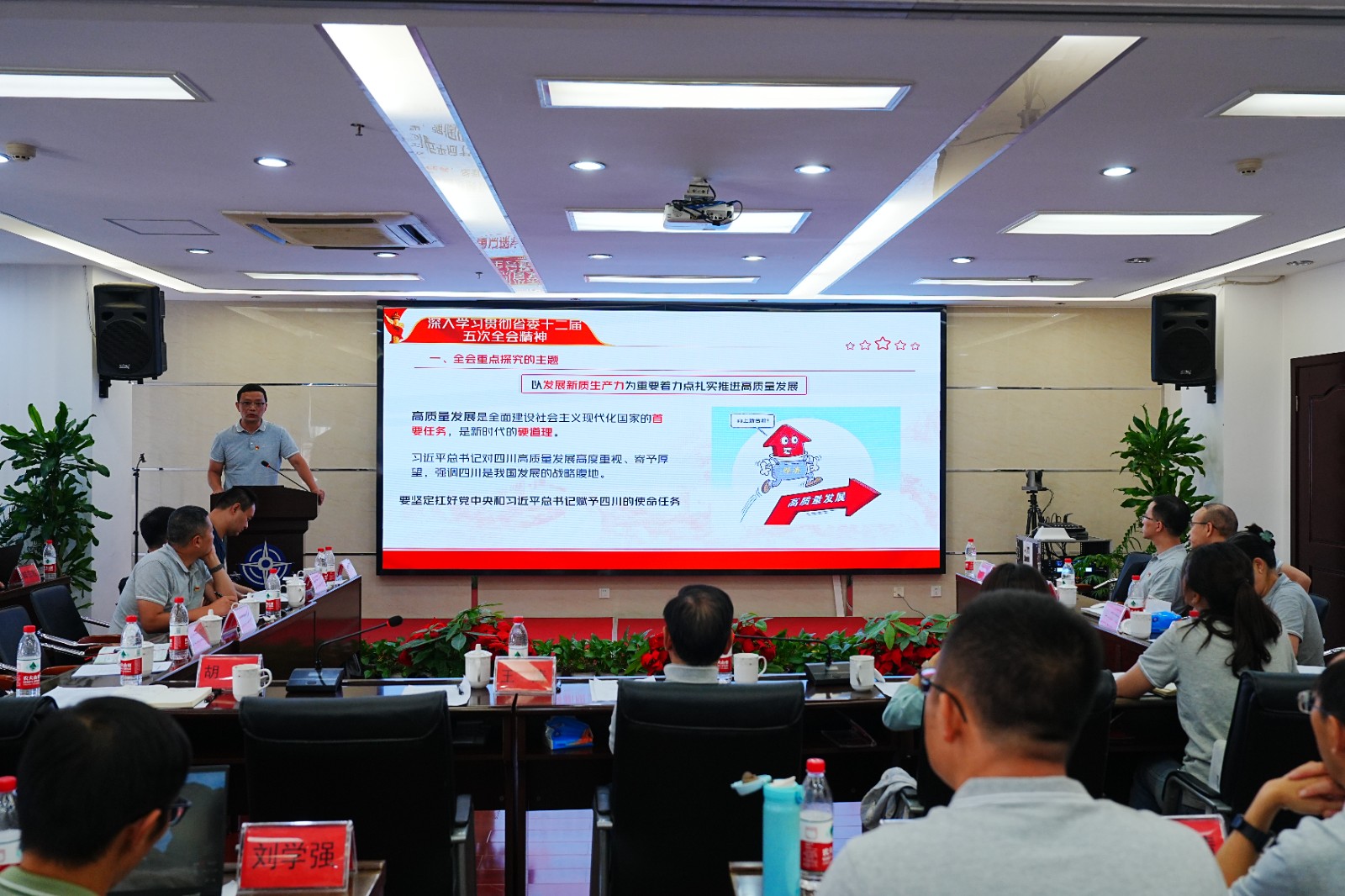 7月26日,交大光芒黨總支專題傳達(dá)學(xué)習(xí)黨的二十屆三中全會(huì)精神,部署貫徹落實(shí)措施。公司黨總支書記、常務(wù)副總經(jīng)理王濤主持會(huì)議并宣講會(huì)議精神。