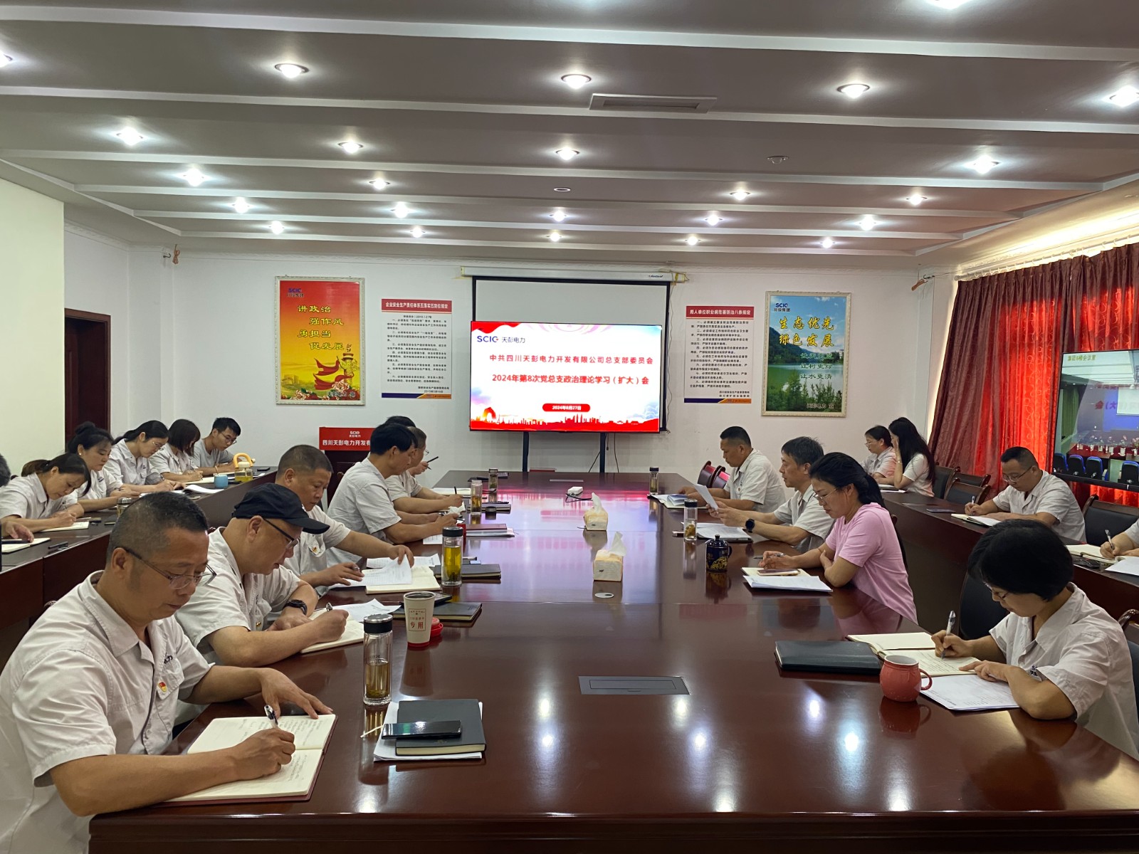 會議強(qiáng)調(diào),公司各級黨組織和廣大黨員干部要切實提高政治站位,深學(xué)細(xì)悟全會精神,找準(zhǔn)全會精神與公司工作的結(jié)合點,明確目標(biāo)、細(xì)化措施、壓實責(zé)任,把學(xué)習(xí)成果轉(zhuǎn)化為推動工作的強(qiáng)大動力,推動全會精神在公司落地生根、開花結(jié)果。要緊密結(jié)合實際,在抓好主業(yè)的同時密切關(guān)注地方政府在新能源項目方面的動態(tài)和政策,搶抓機(jī)遇擴(kuò)大公司經(jīng)營規(guī)模,真抓實干推動發(fā)展。要針對當(dāng)前汛期工作,密切關(guān)注氣象地災(zāi)預(yù)警信息,加強(qiáng)防汛值班和巡視檢查,做好防汛減災(zāi)應(yīng)急準(zhǔn)備,并利用汛期豐沛來水組織好發(fā)電生產(chǎn)。