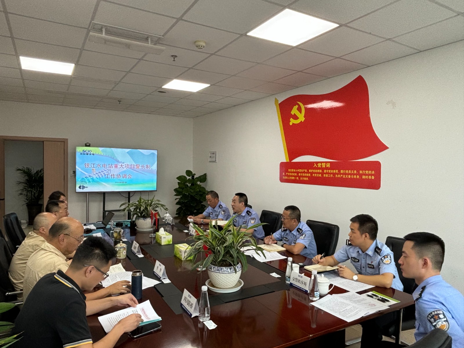 為保障銀江水電站重大項(xiàng)目安全順利推進(jìn),護(hù)航服務(wù)攀枝花市高質(zhì)量發(fā)展建設(shè)共同富裕試驗(yàn)區(qū),攀枝花市公安局與攀水電公司建立了銀江水電站“重大項(xiàng)目警長(zhǎng)制”,9月3日上午,市公安局機(jī)關(guān)黨委副書記張征帶隊(duì)赴公司召開(kāi)工作協(xié)調(diào)會(huì)議。攀水電公司黨總支副書記、總經(jīng)理、聯(lián)絡(luò)工作組組長(zhǎng)吳巍嶼出席會(huì)議,交警支隊(duì)辦公室、秩序科、三大隊(duì)及公司相關(guān)部門等10余人參加會(huì)議。
