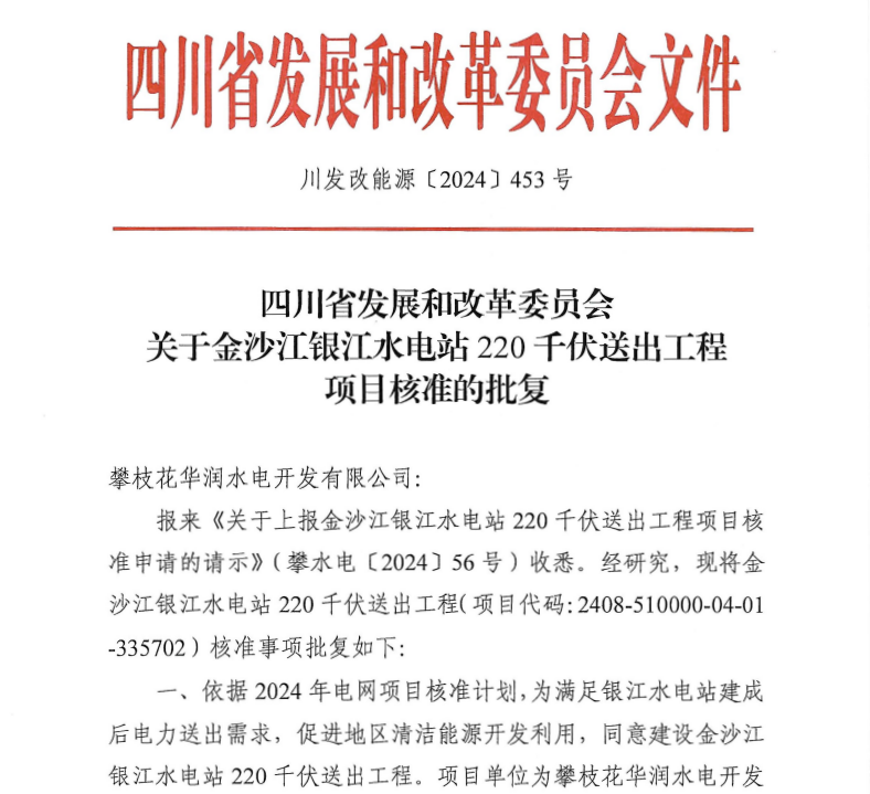 9月6日,川投能源所屬金沙江銀江水電站220千伏送出工程成功取得四川省發(fā)改委核準(zhǔn)批復(fù),為順利實(shí)現(xiàn)蓄水發(fā)電目標(biāo)再增“助推器”。